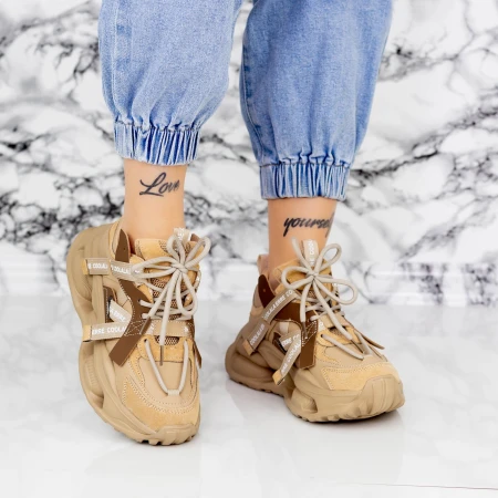 Női sportcipő platformmal 5WZ10 Bézs | Pantoful