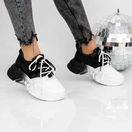 Női sportcipő platformmal 5WL35 Fekete-Fehér | Mei