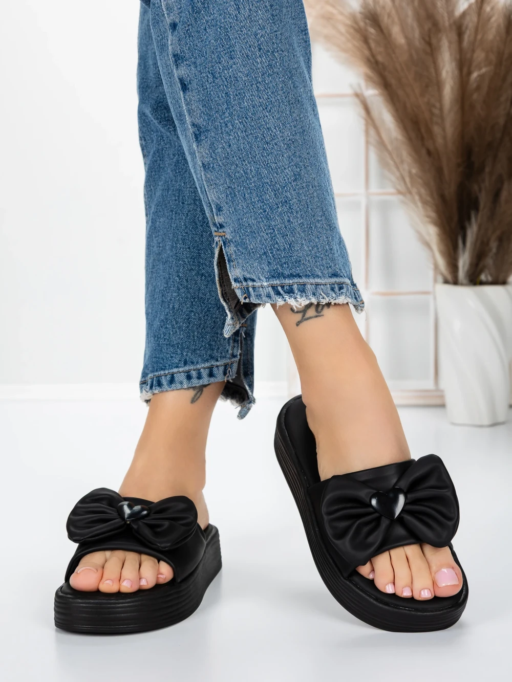Papuci Dama cu Talpa Joasa 3AW319 BLACK | MEI