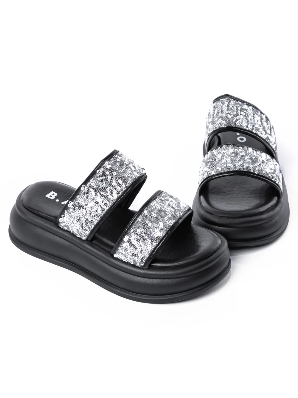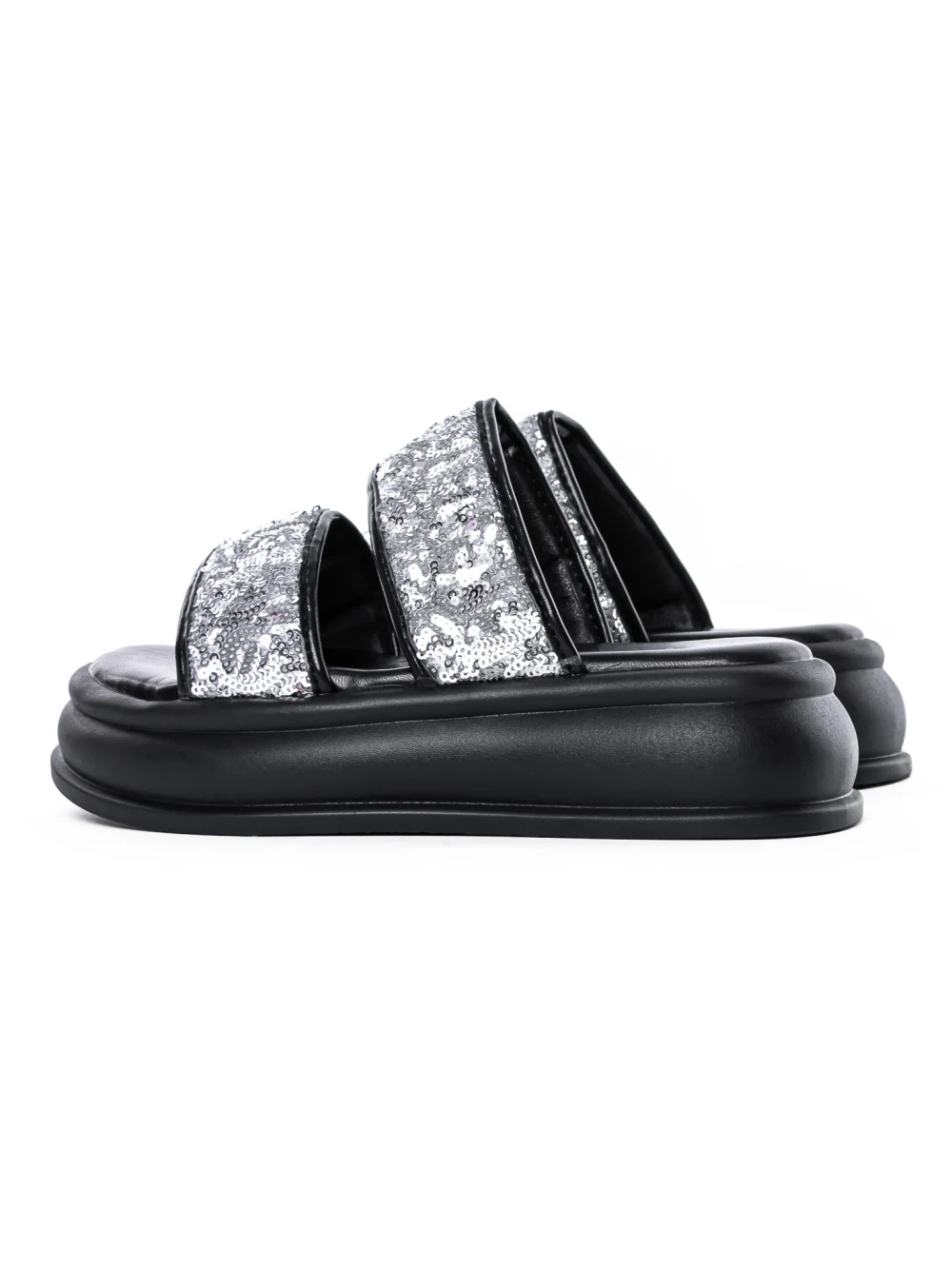 Női papucs alacsony talppal 888-2 Fekete-Ezüst | Fashion