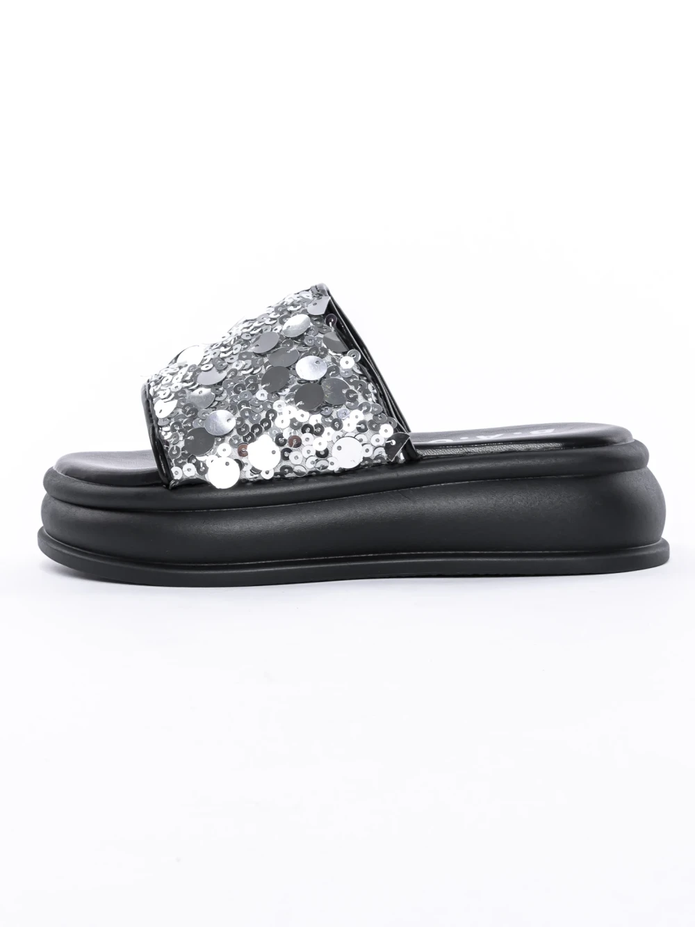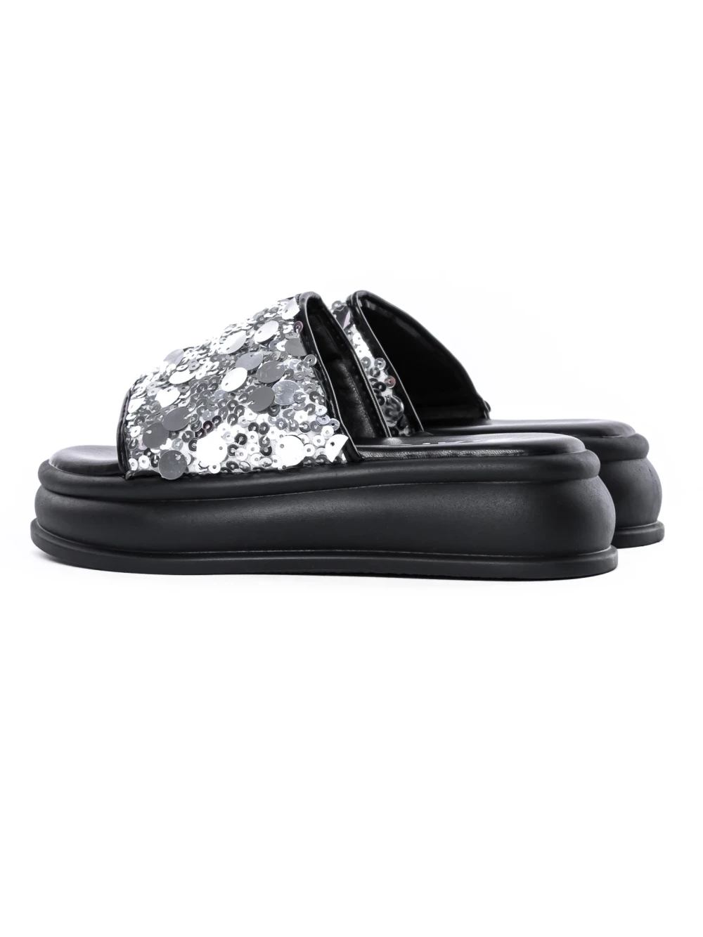 Női papucs alacsony talppal 999-1 Fekete-Ezüst | Fashion