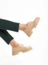 Tayla bézs alkalmi női cipő, lakkozott műbőrből készült
