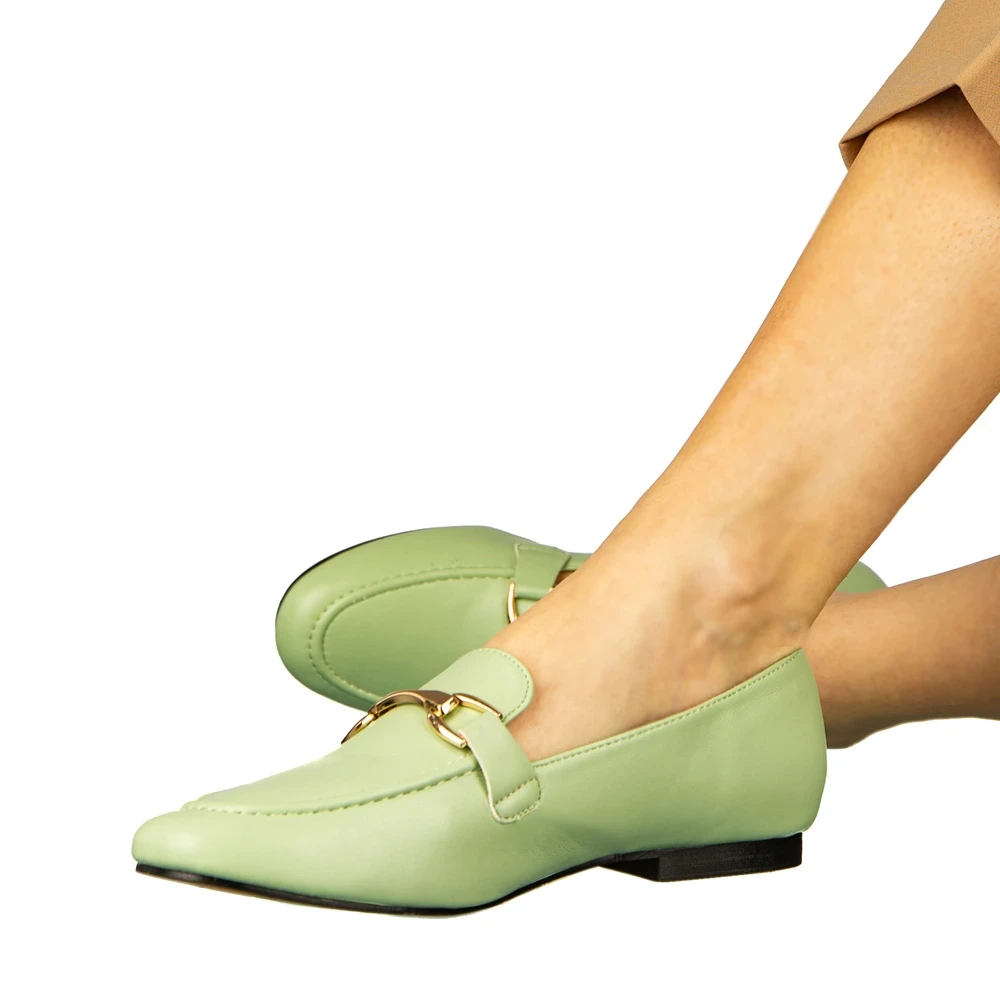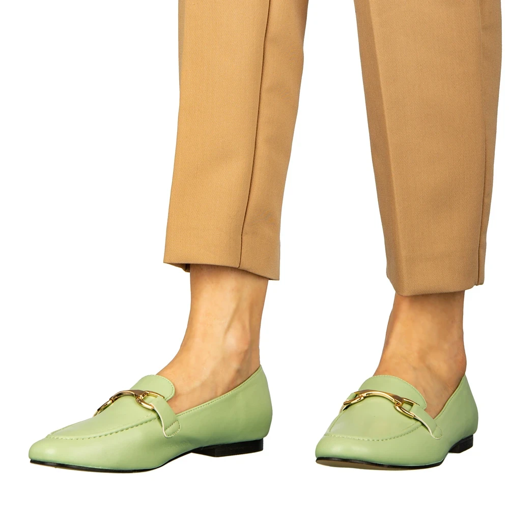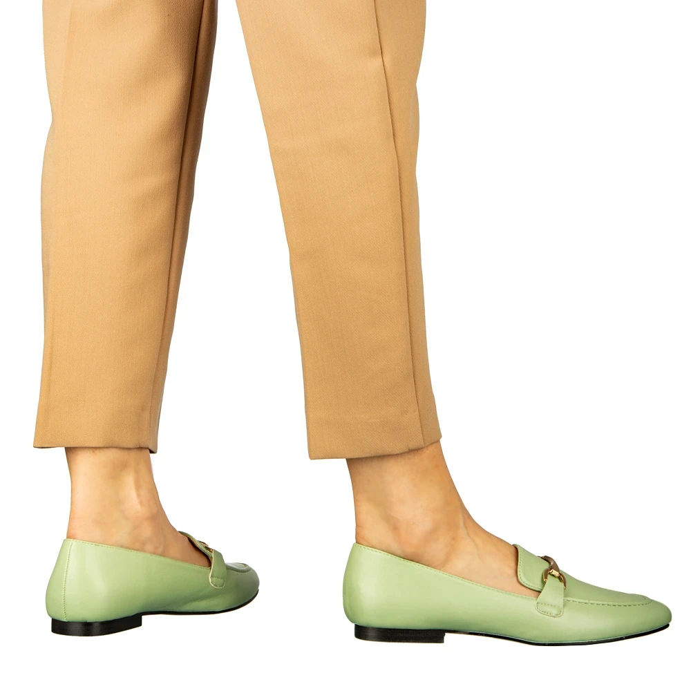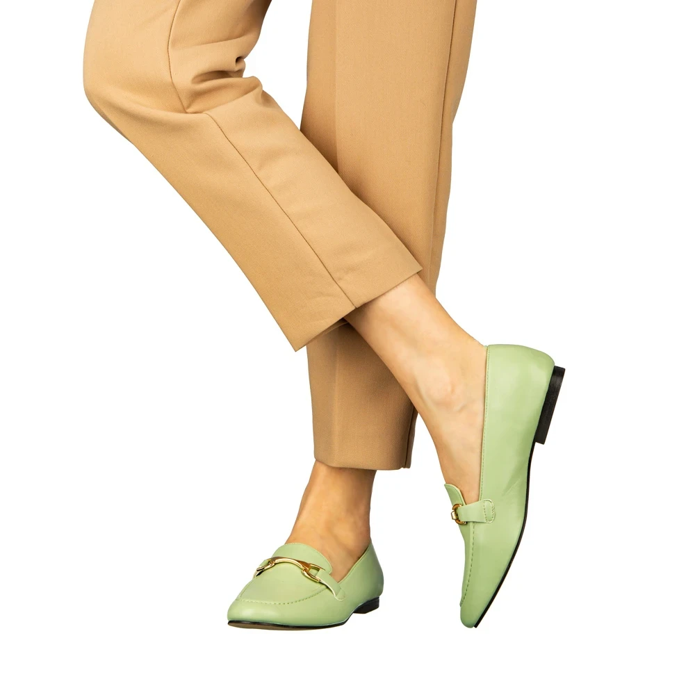 Dineb zöld női mokaszin műbőrből