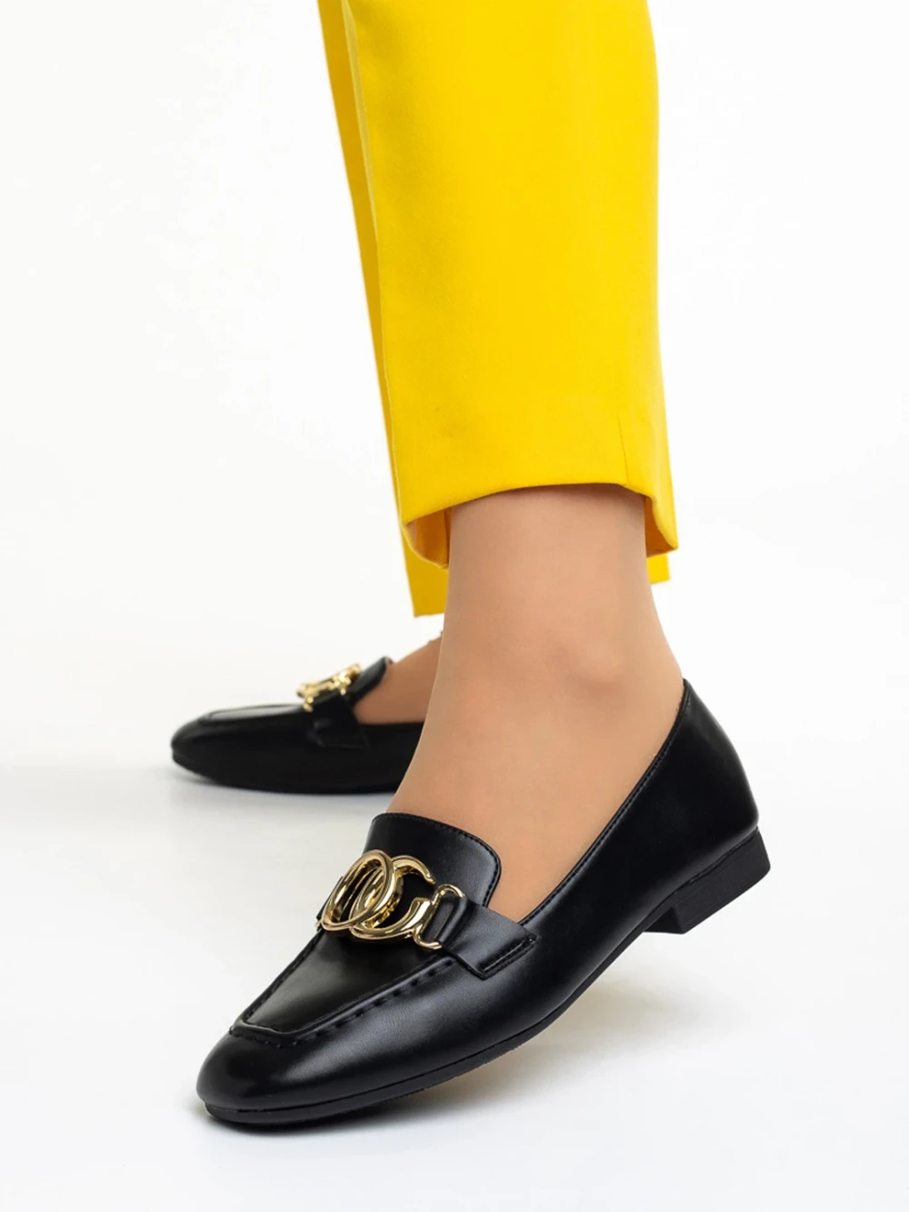 Rielyn fekete női mokaszin, műbőrből készült Termék leírás