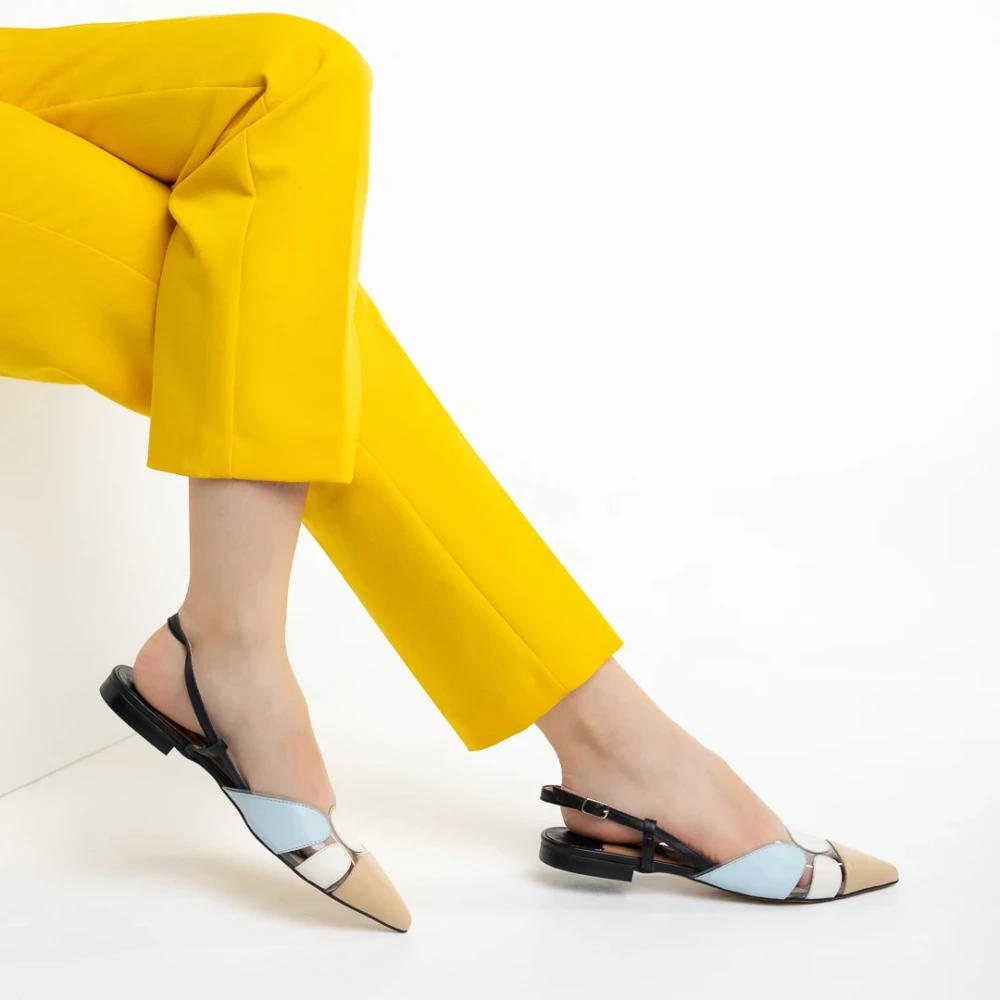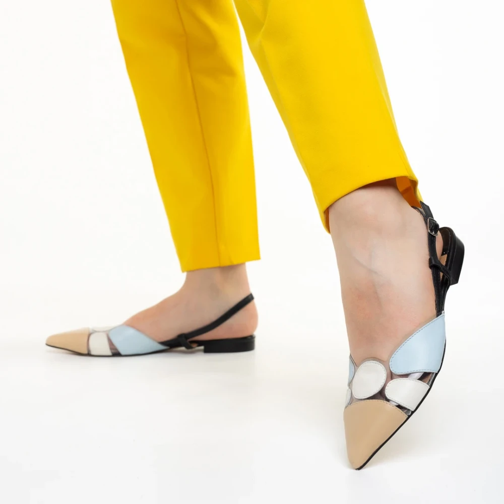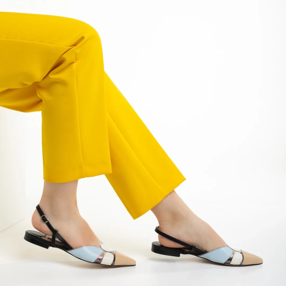 Marco bézs és kék női cipő, Alfonsina valódi bőrből készült