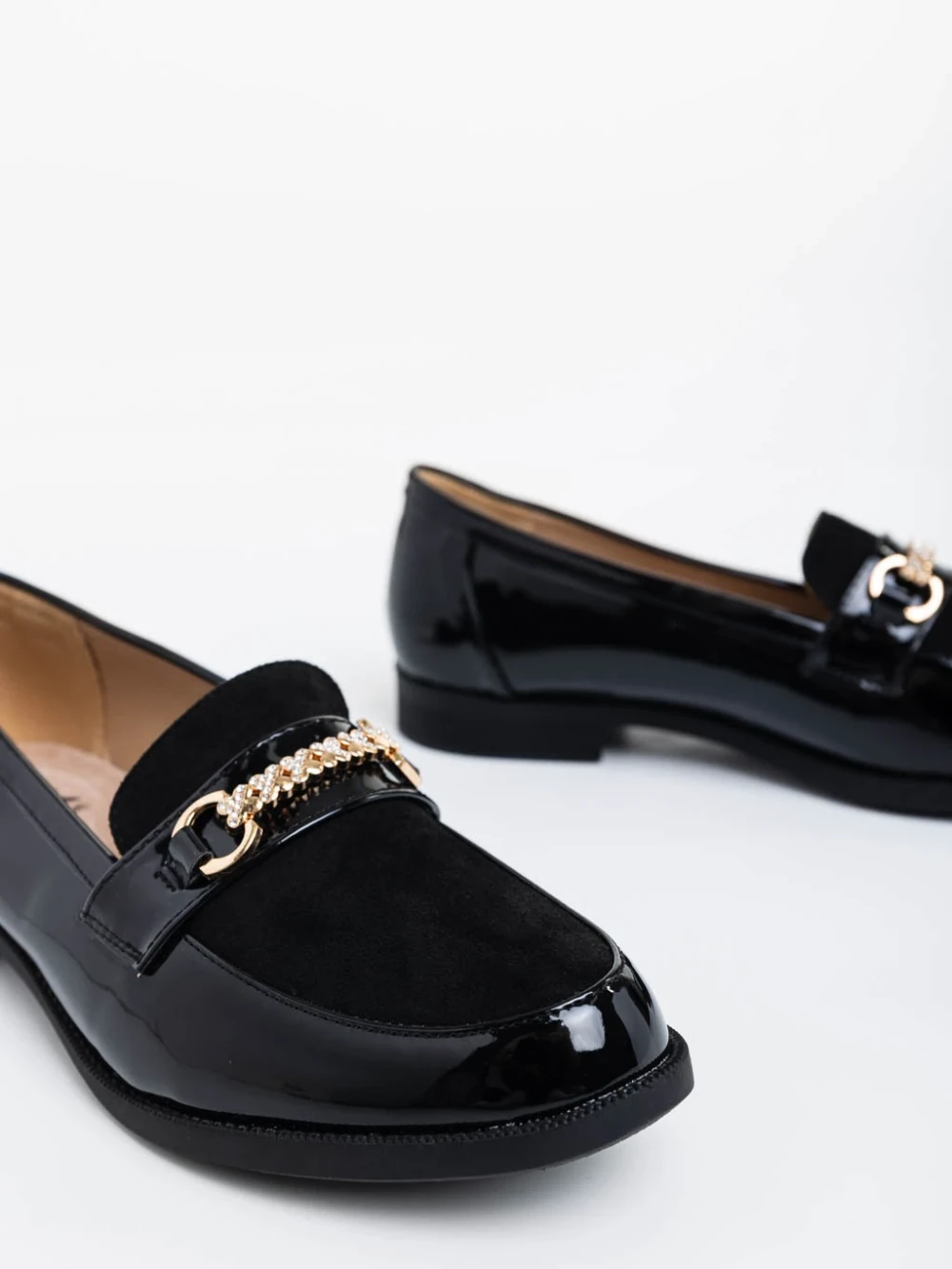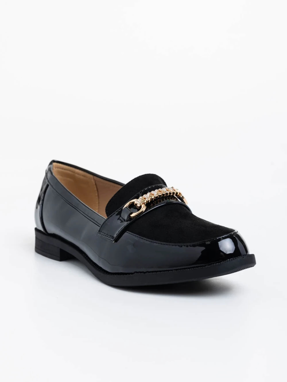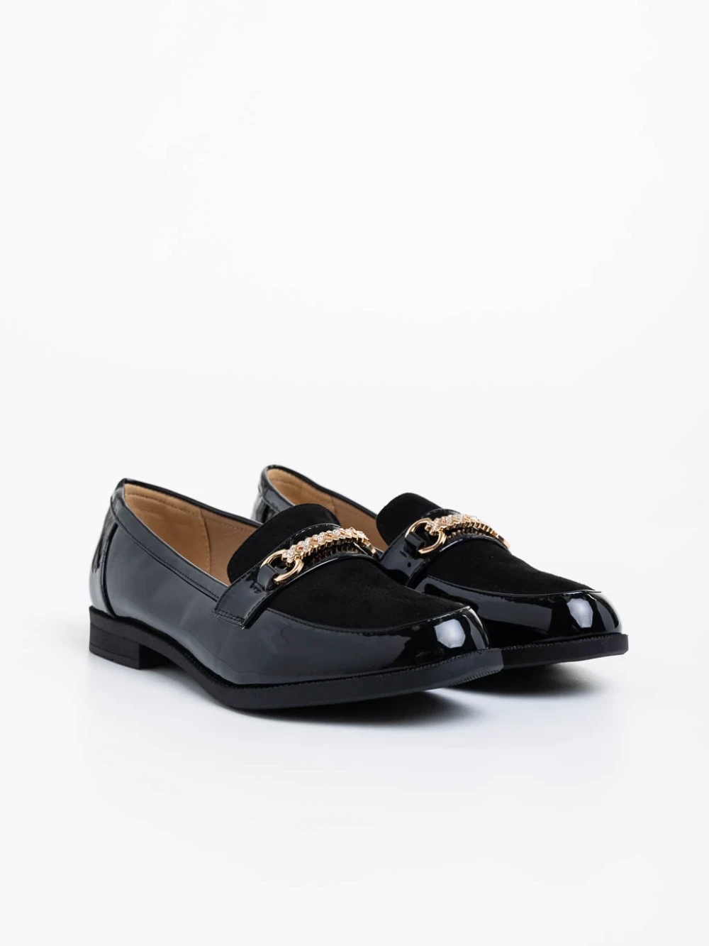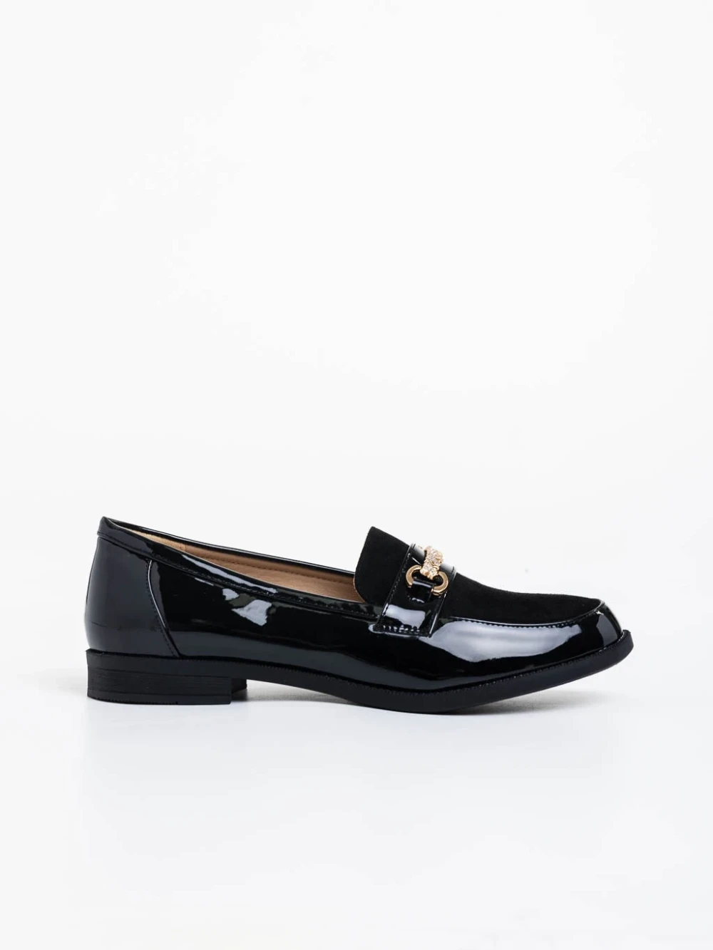 Manon fekete női félcipő lakkozott ökológiai bőrből