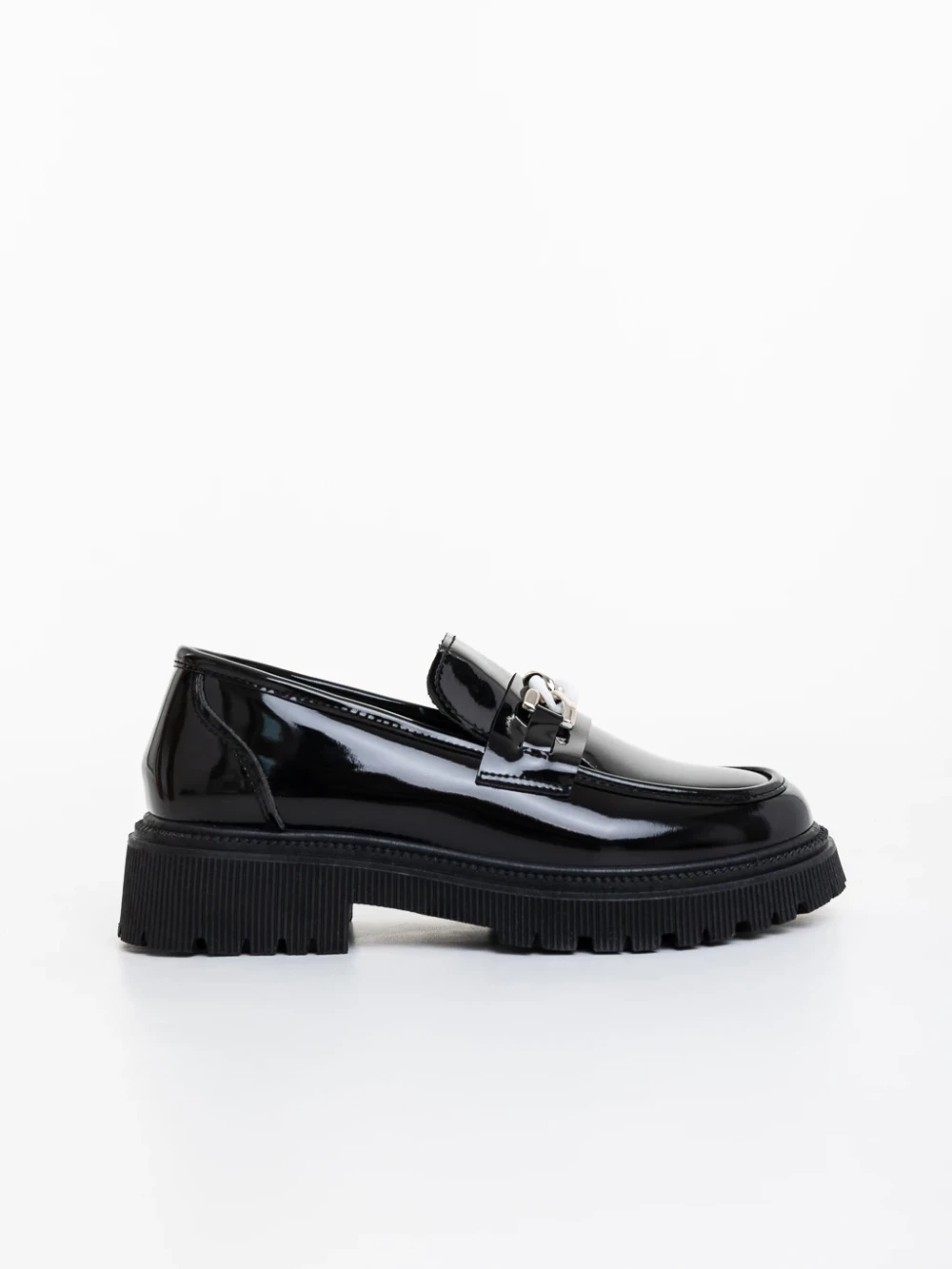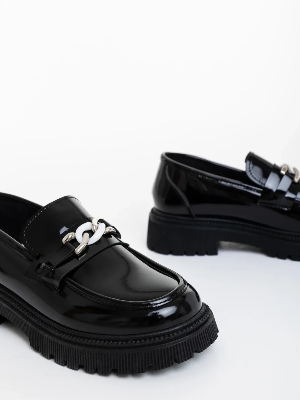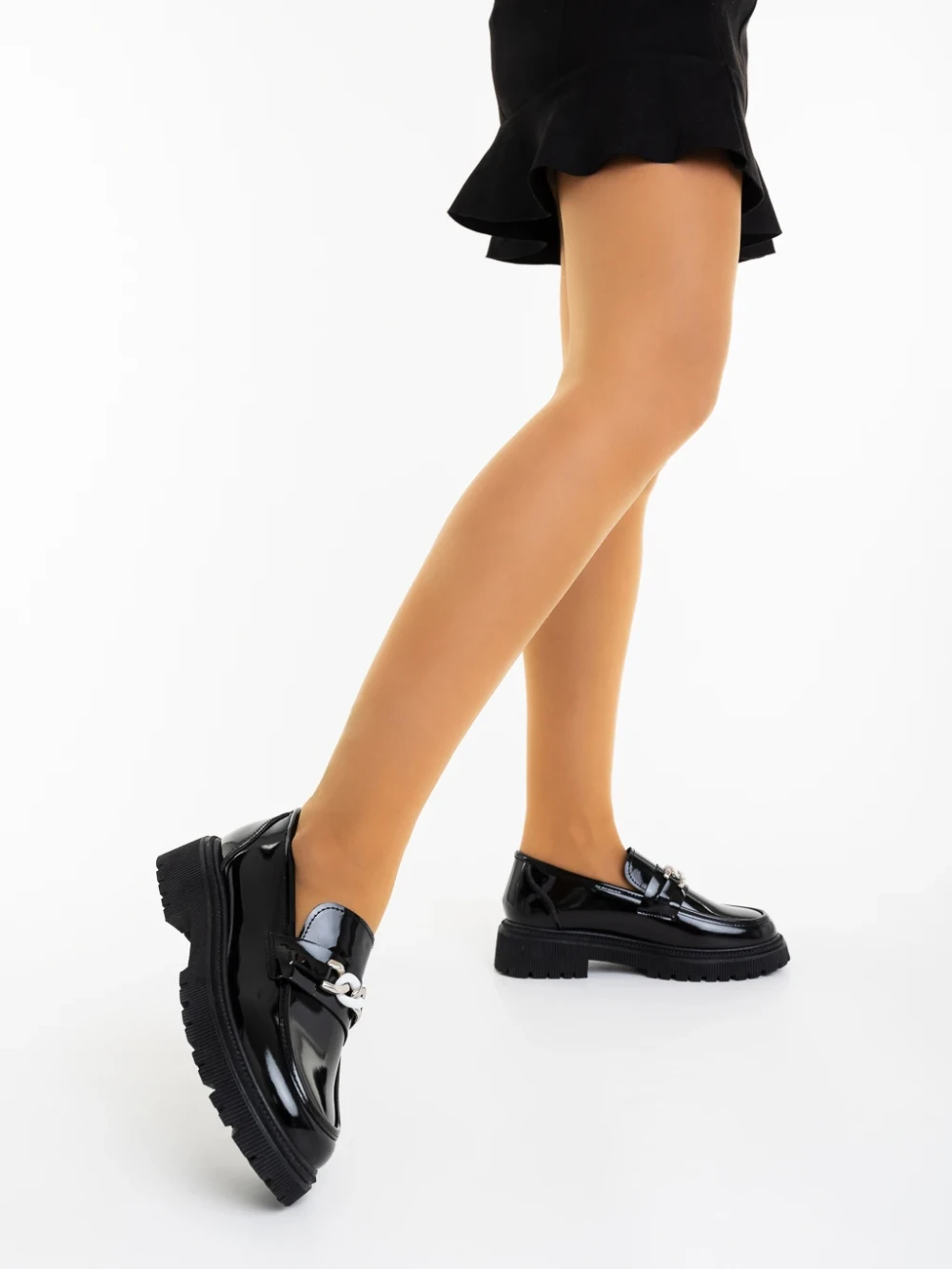 Sardor fekete női félcipő lakkozott ökológiai bőrből
