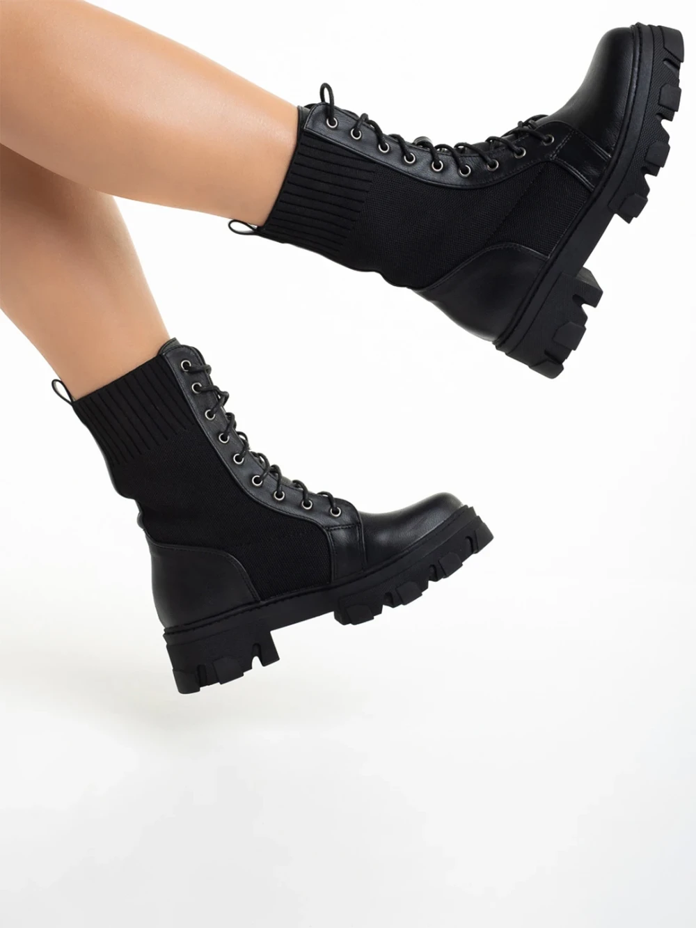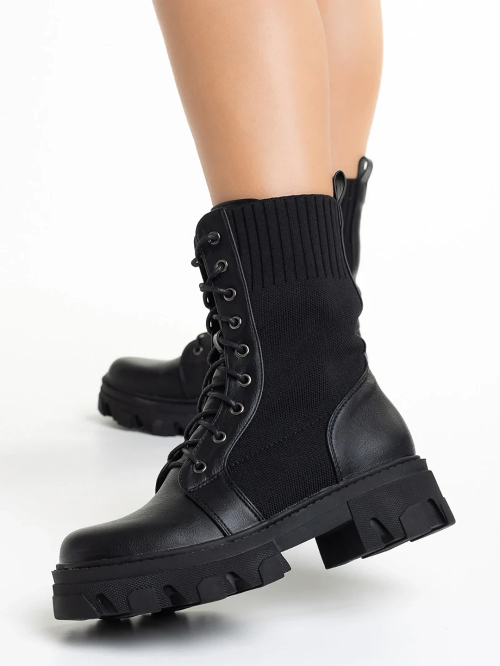 Giana fekete női bakancs, műbőrből és textil anyagból készült