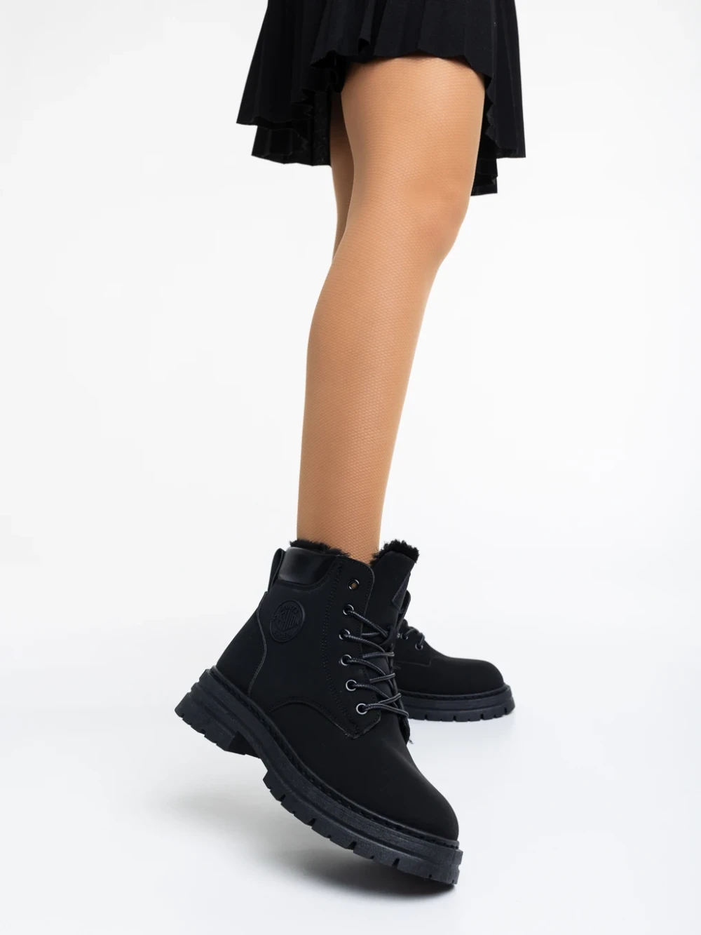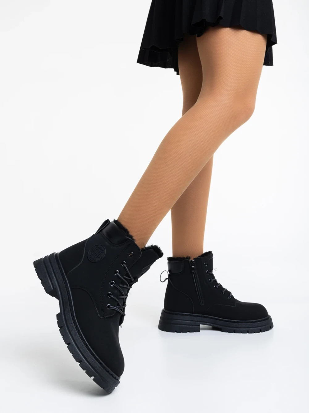 Kandi fekete, női bakancs, ökológiai bőrből