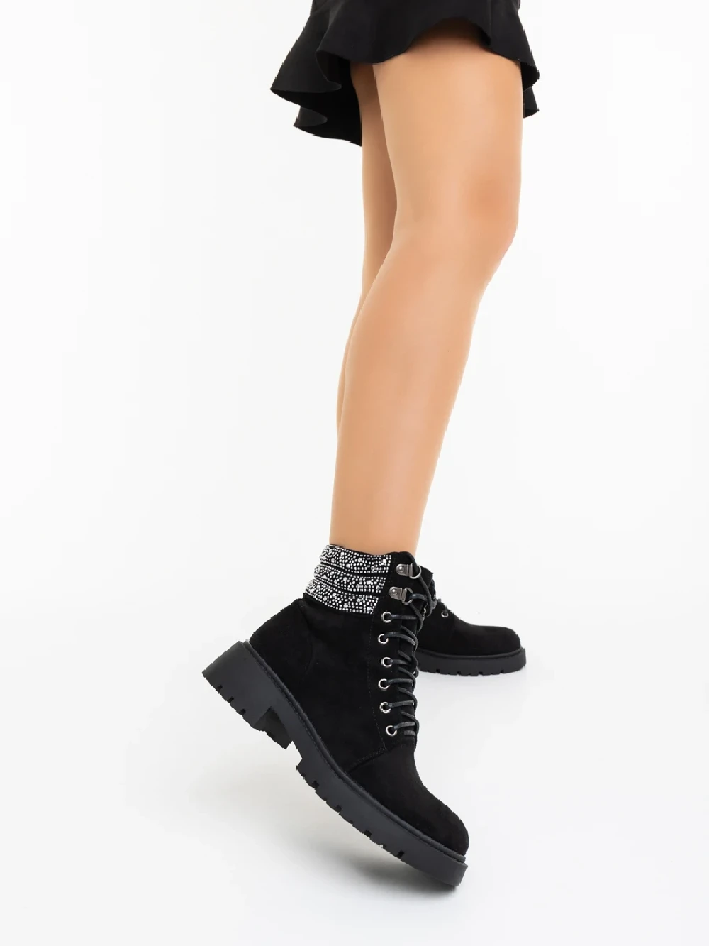 Megara fekete női bakancs textil anyagból Termék leírás