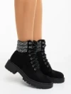Megara fekete női bakancs textil anyagból