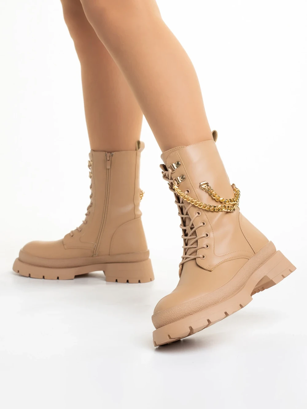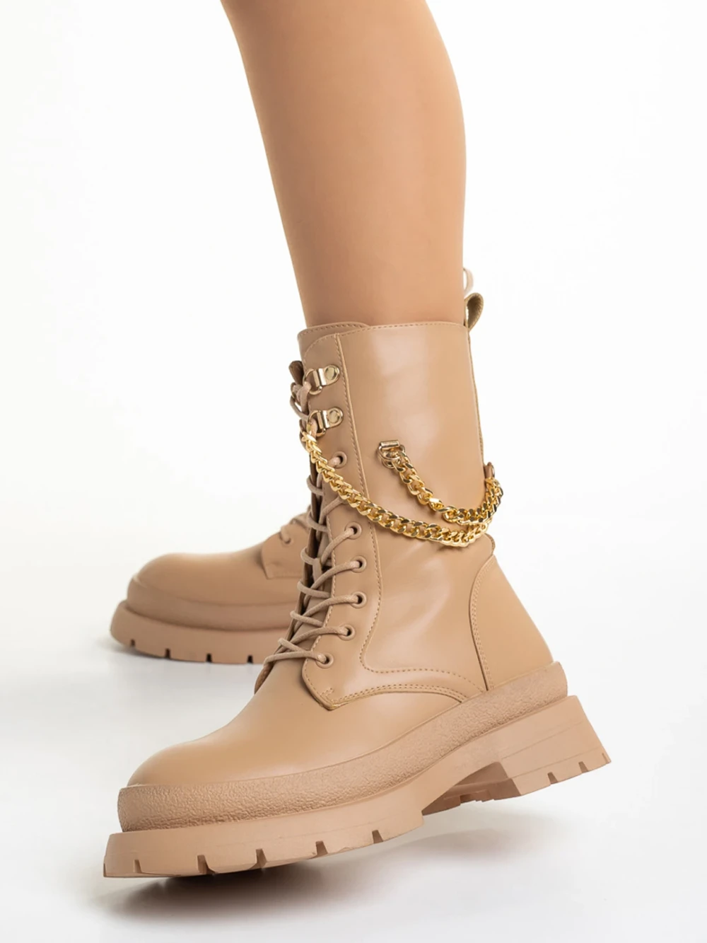 Damani bézs női bakancs, műbőrből készült Termék leírás