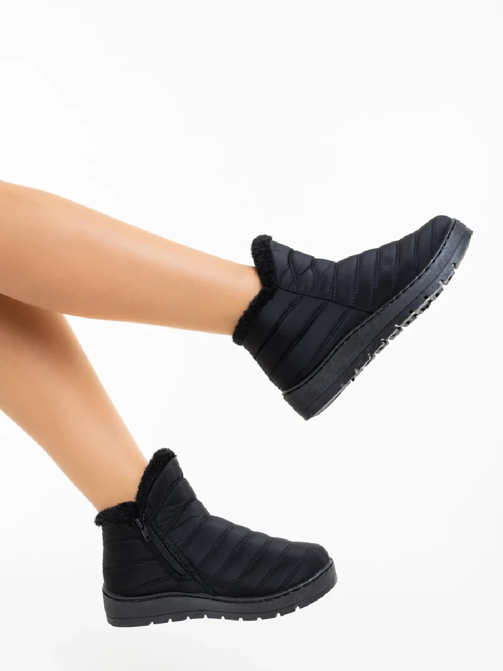 Atala fekete női bakancs textil anyagból Termék leírás