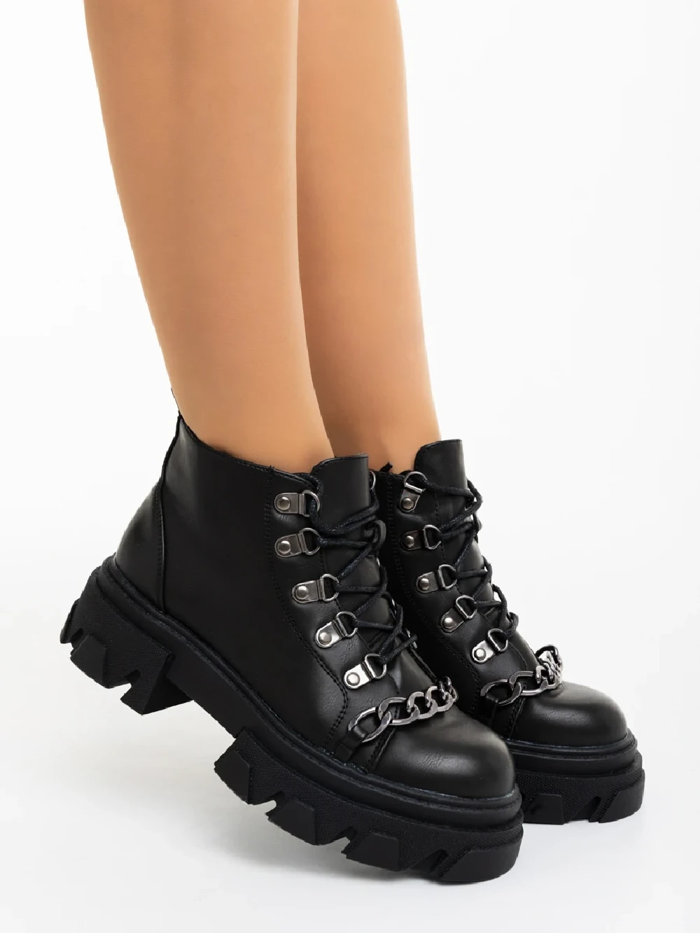 Elinora fekete női bakancs ökológiai bőrből Termék leírás