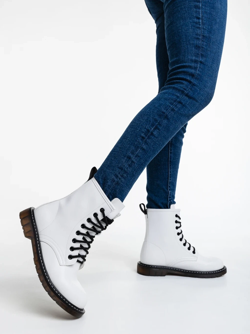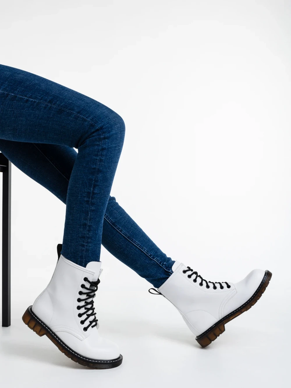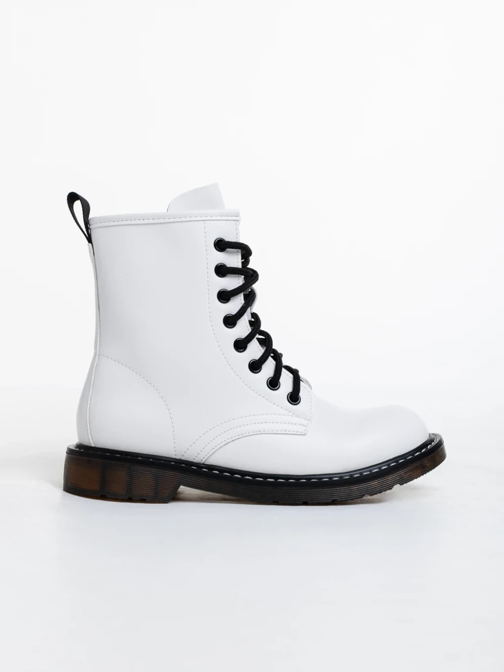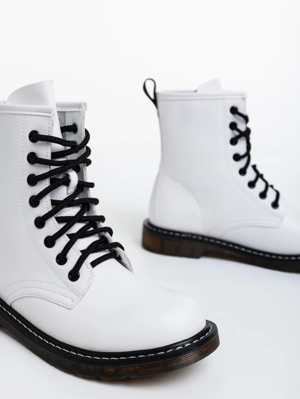 Tierra fehér női bakancs lakkozott ökológiai bőrből
