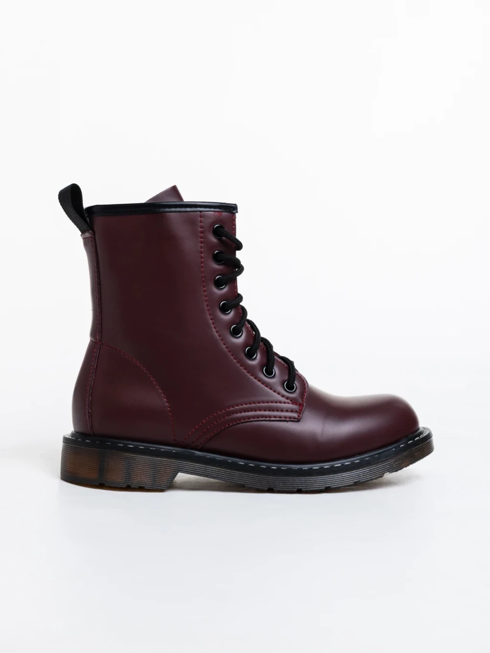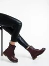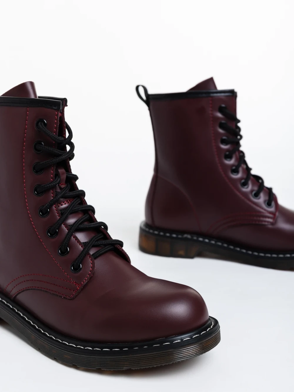 Tierra gránátszínű női bakancs lakkozott ökológiai bőrből