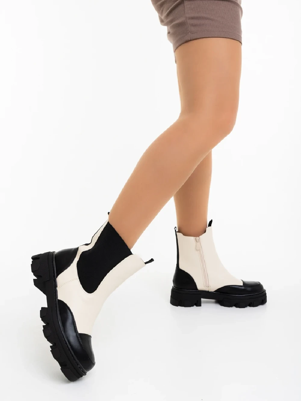 Lilana fekete és bézs női bakancs ökológiai bőrből Termék leírás