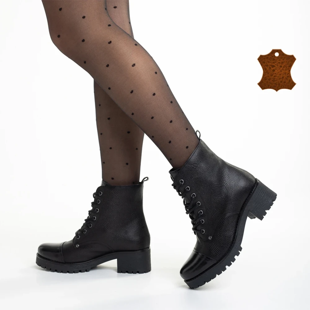 Fekete női csizma természetes bőrből Naisha
