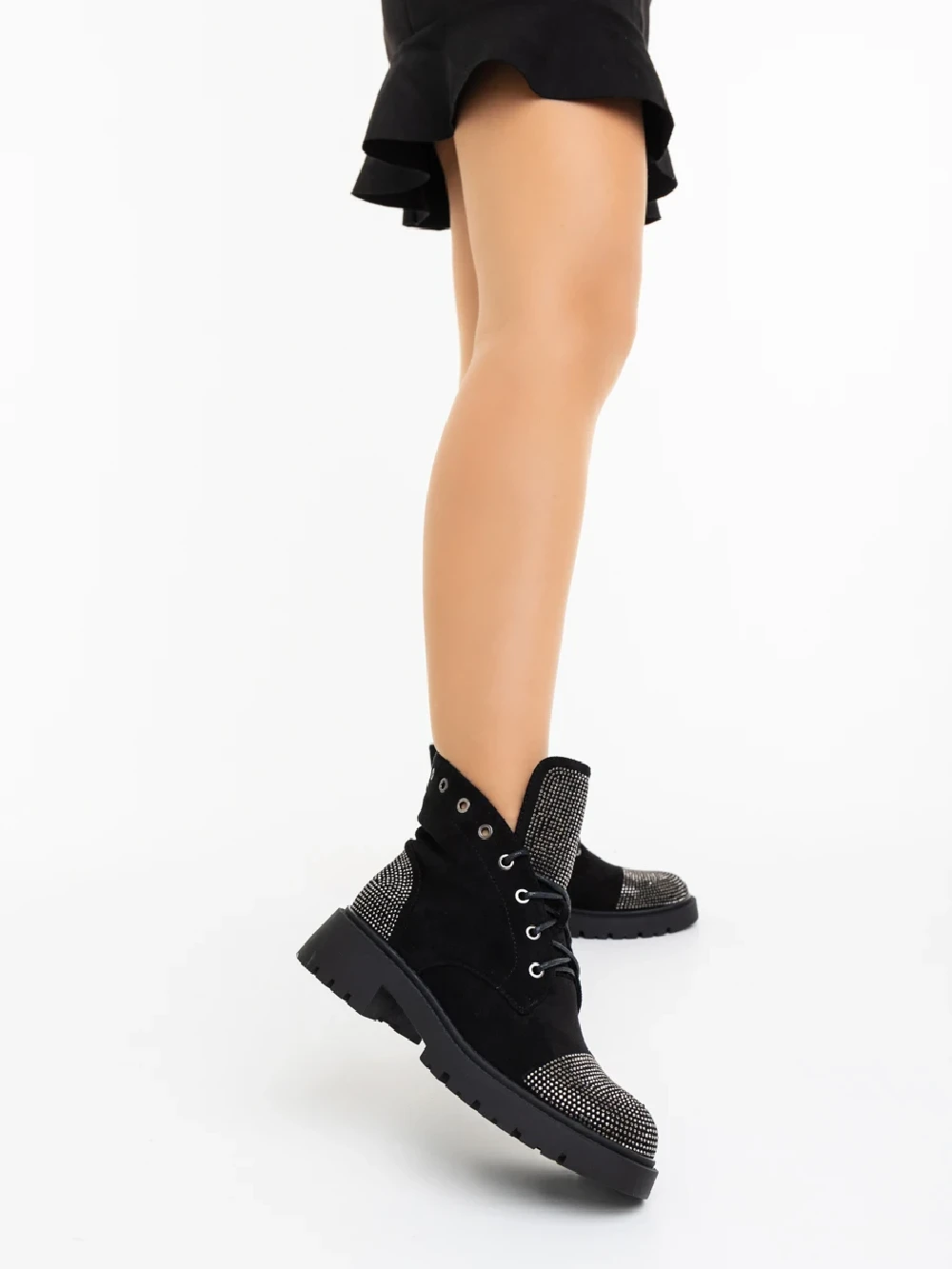 Candida fekete női bakancs textil anyagból Termék leírás