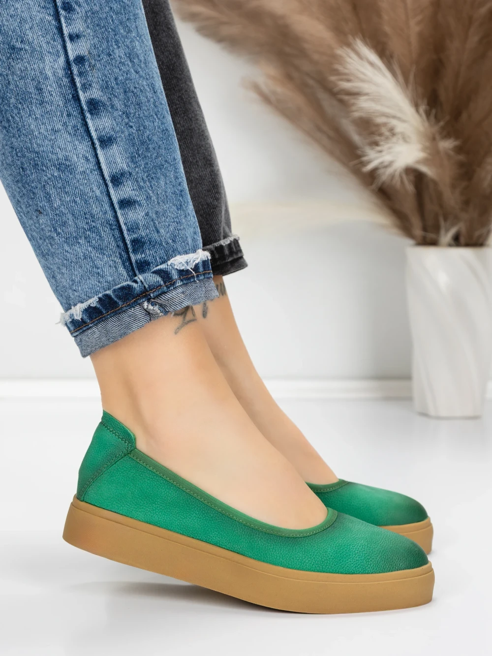 Balerini Dama din piele naturala N3301 GREEN | ADVANCER