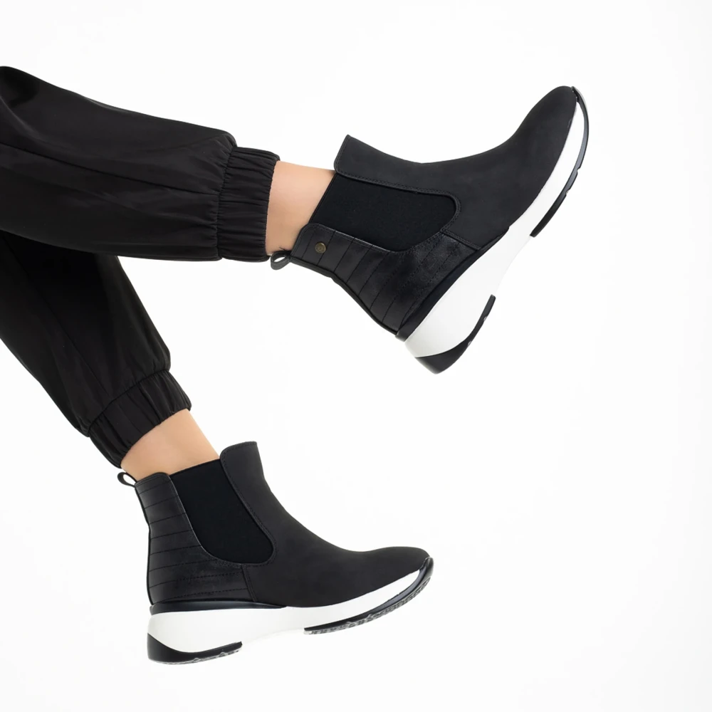 Ivanka fekete női bokacsizma, műbőrből készült Termék leírás