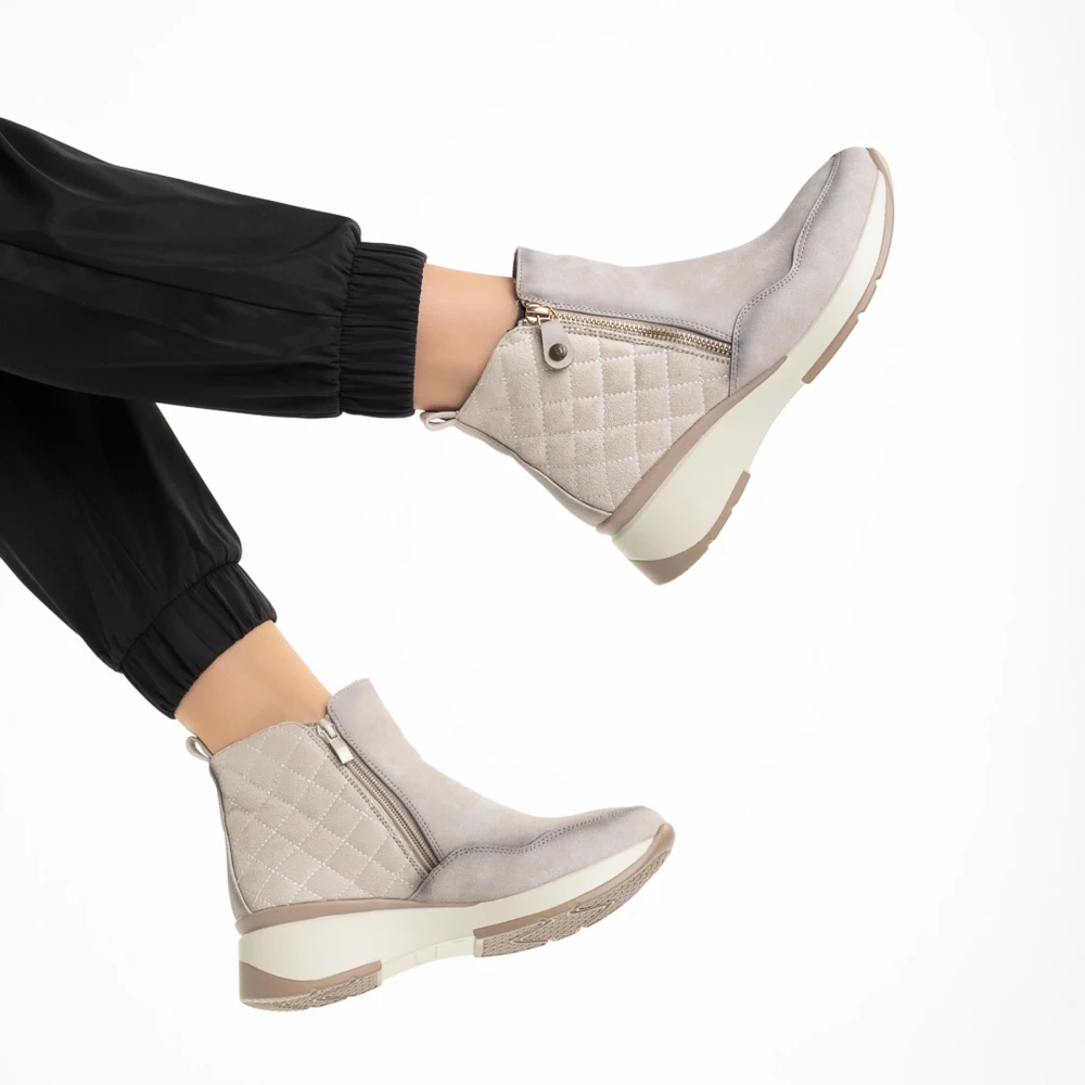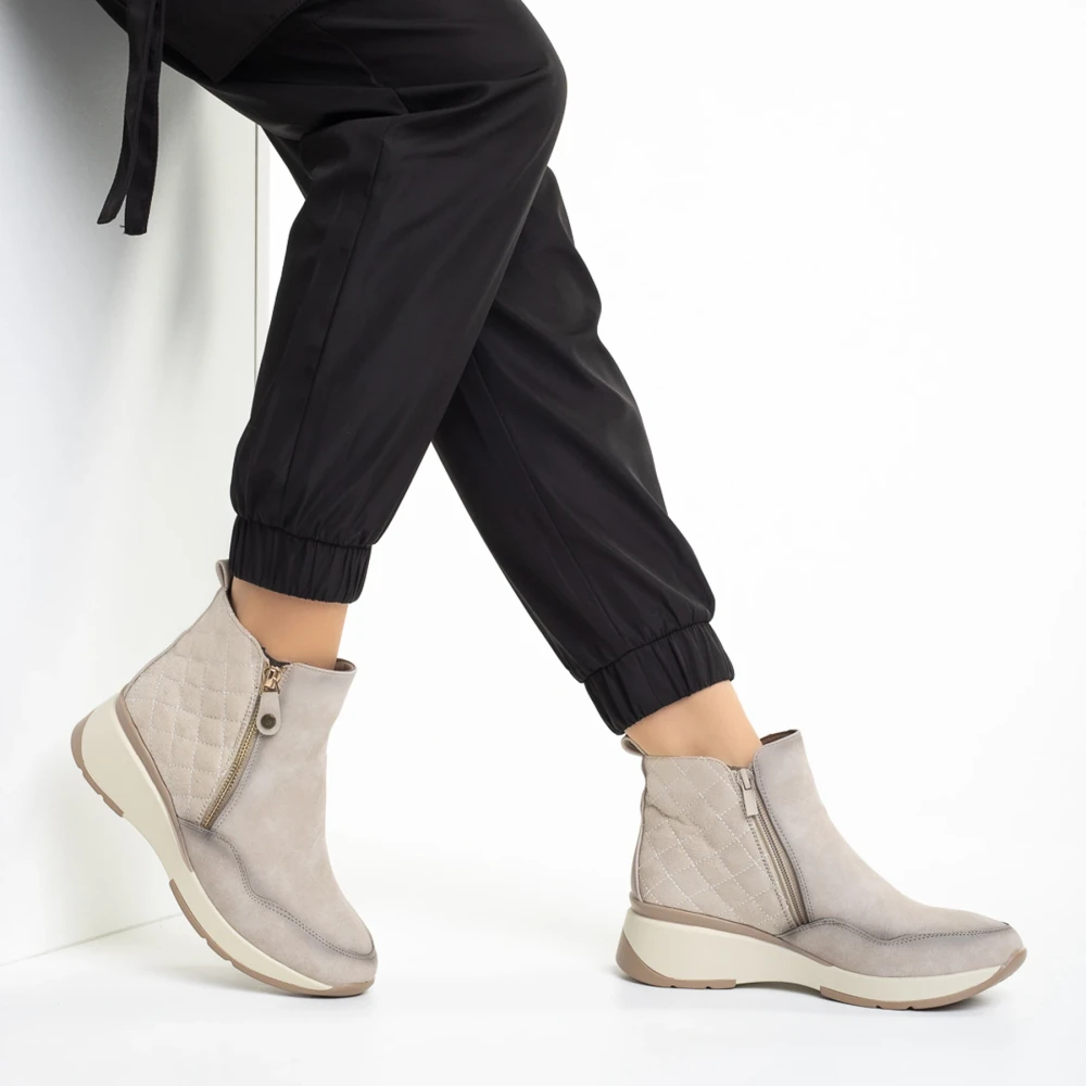 Golda bézs női bokacsizma, műbőrből készült Termék leírás