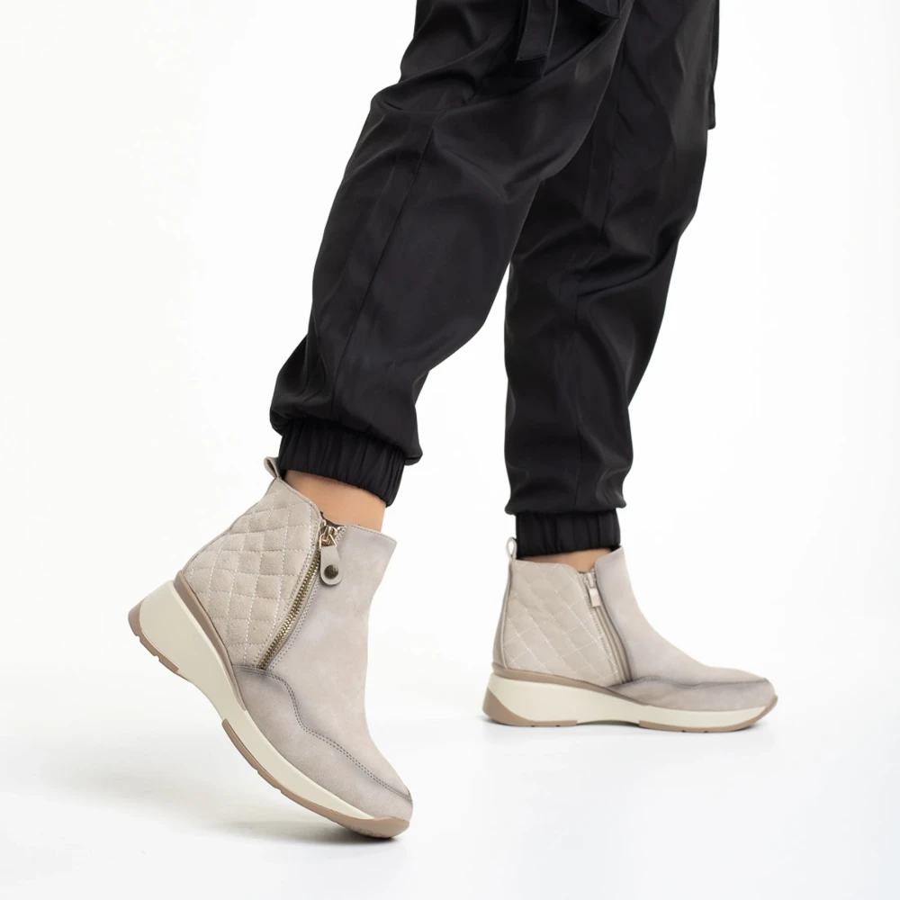 Golda bézs női bokacsizma, műbőrből készült
