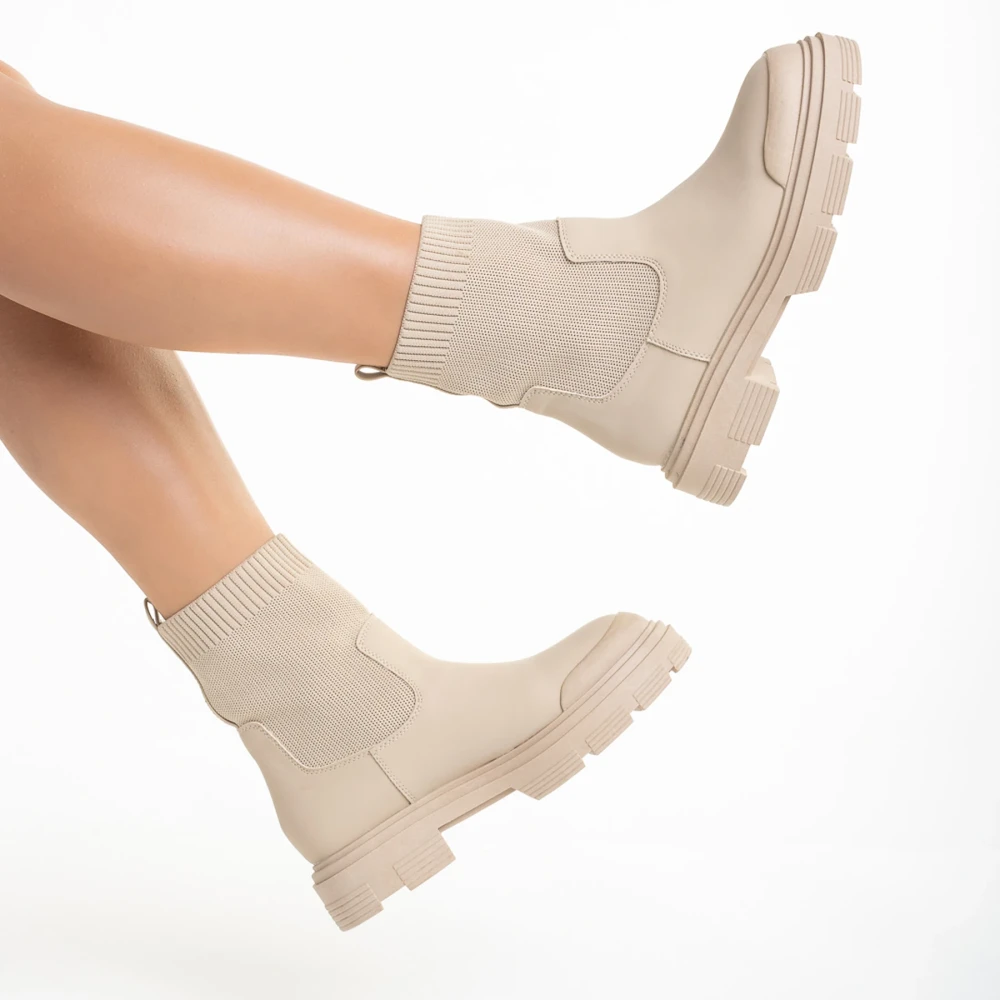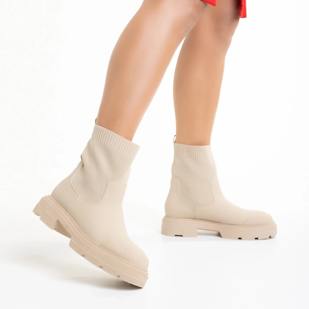 Chiara ökológiai bőrből és textil anyagból készült bézs színű női bokacsizma
