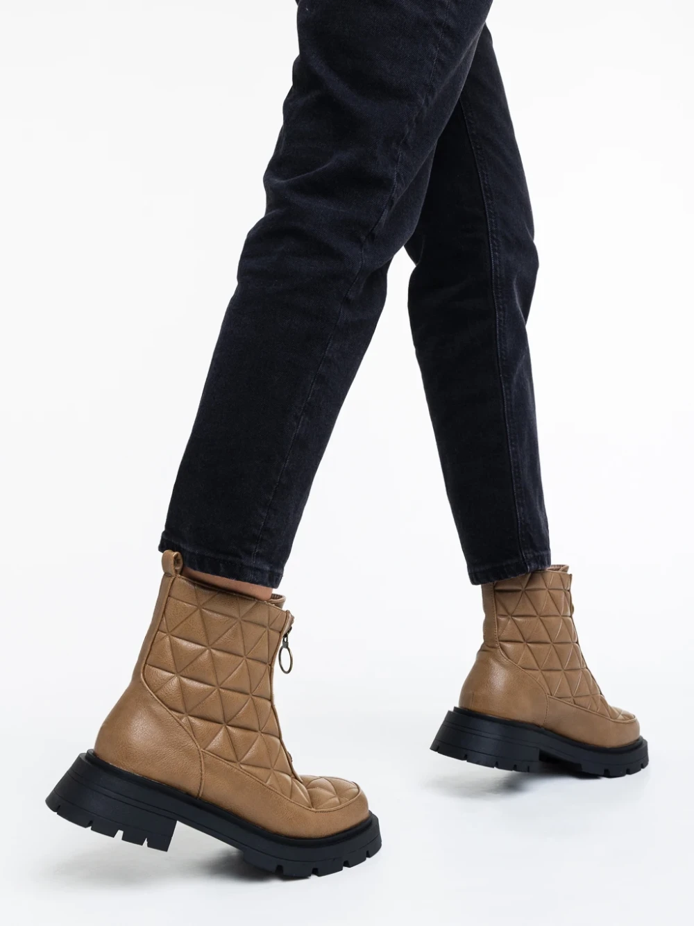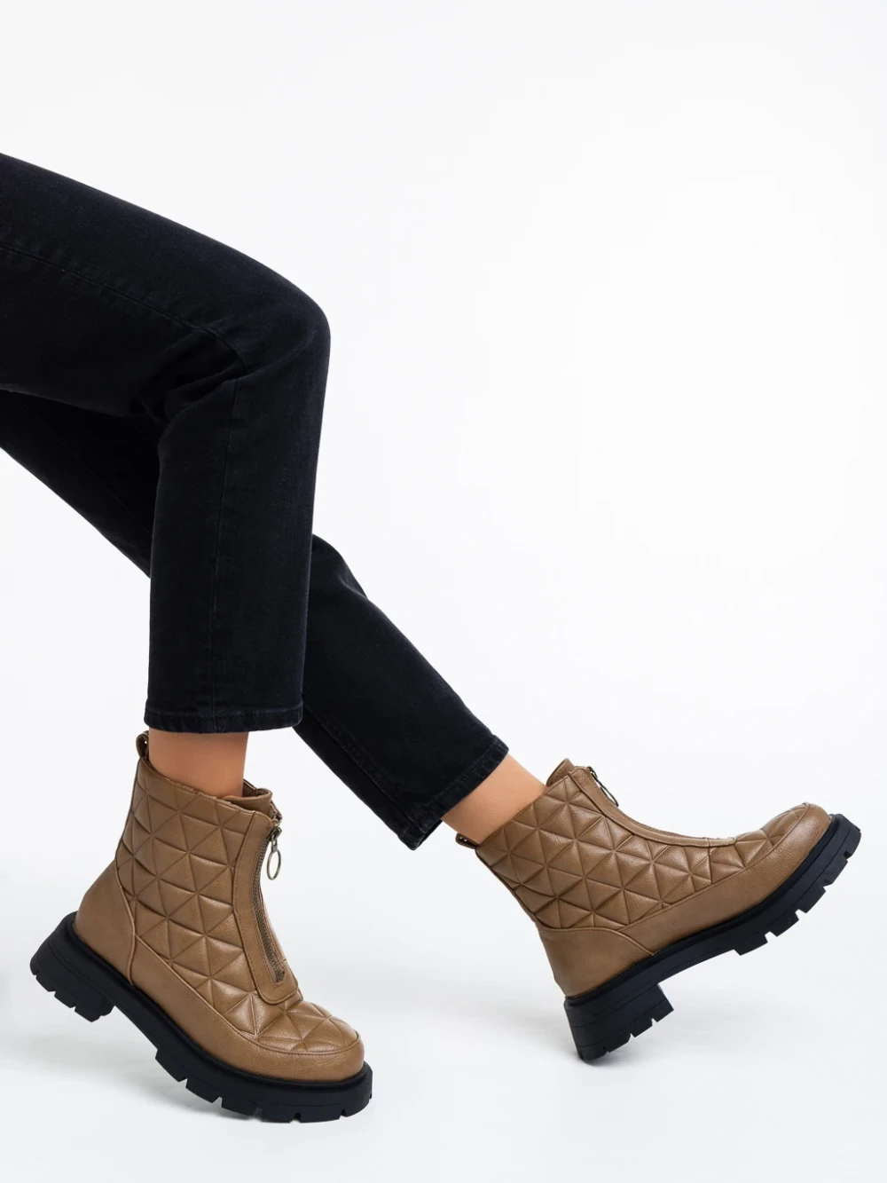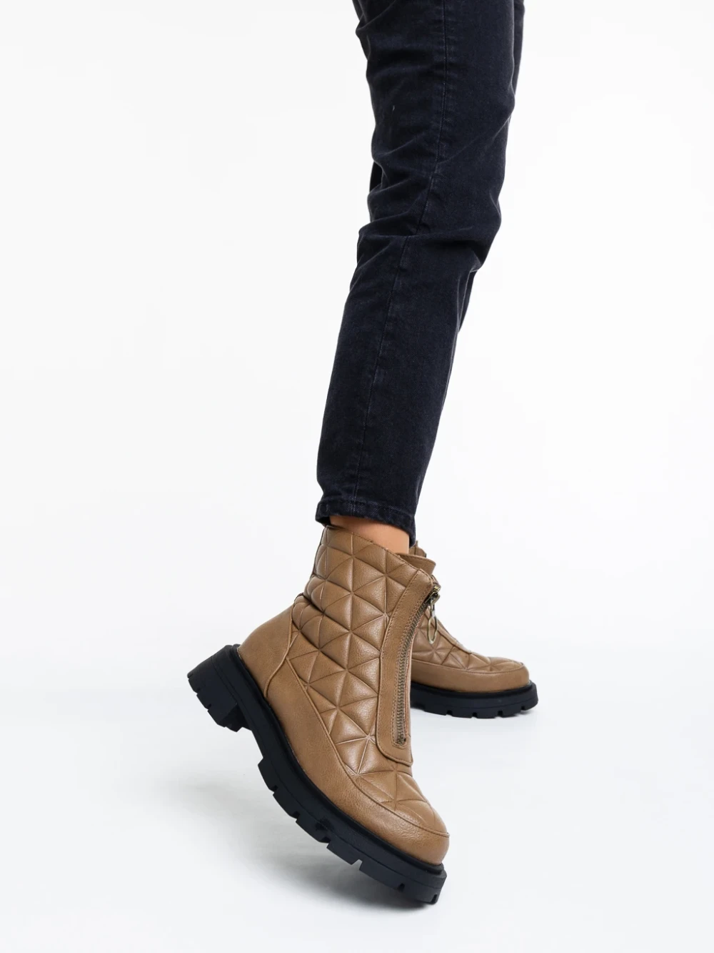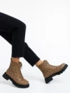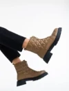 Katarina világos barna, női bokacsizma, ökológiai bőrből