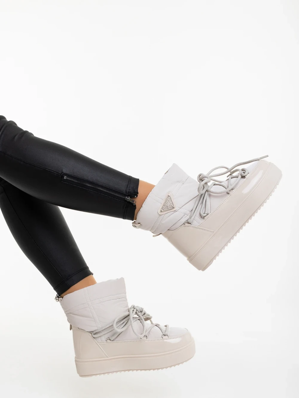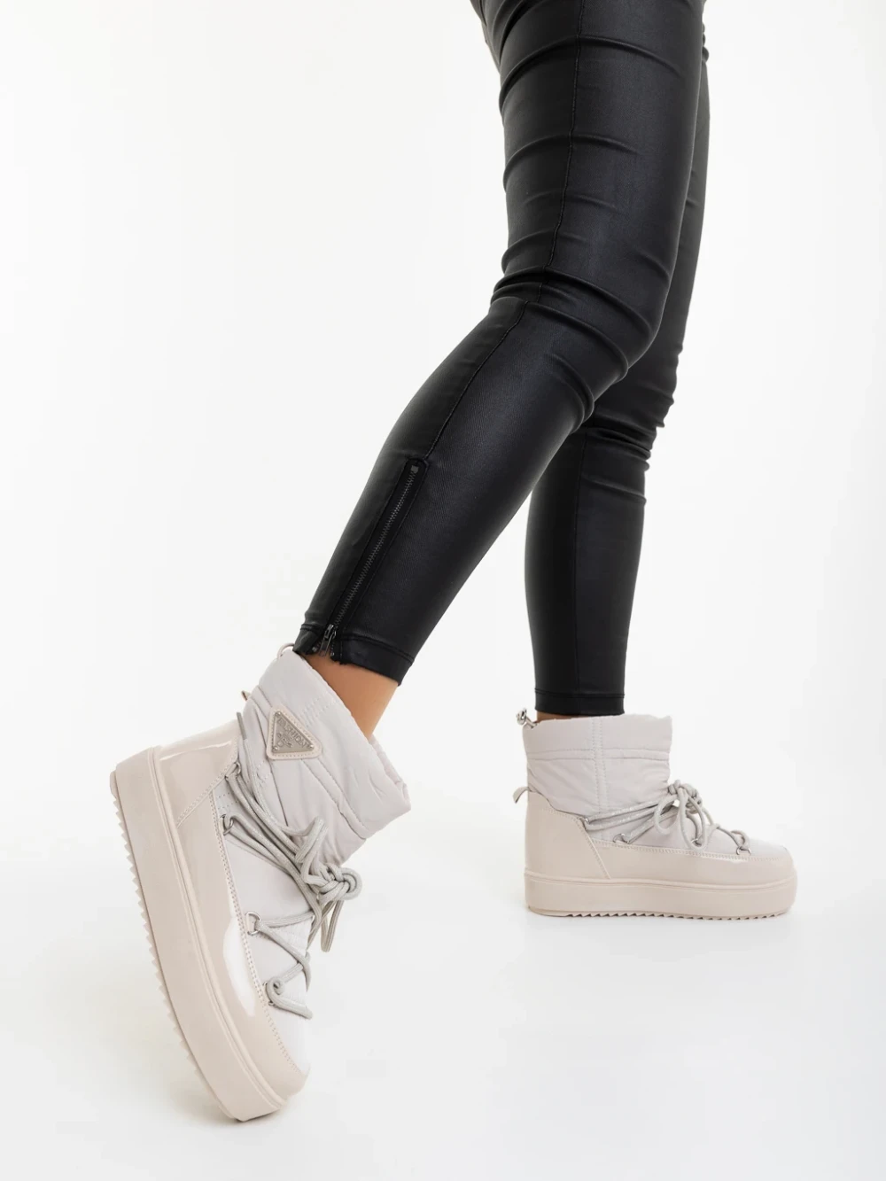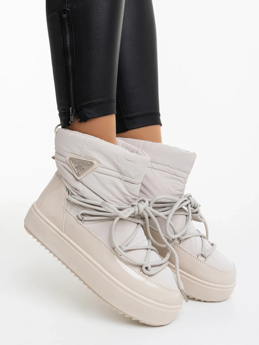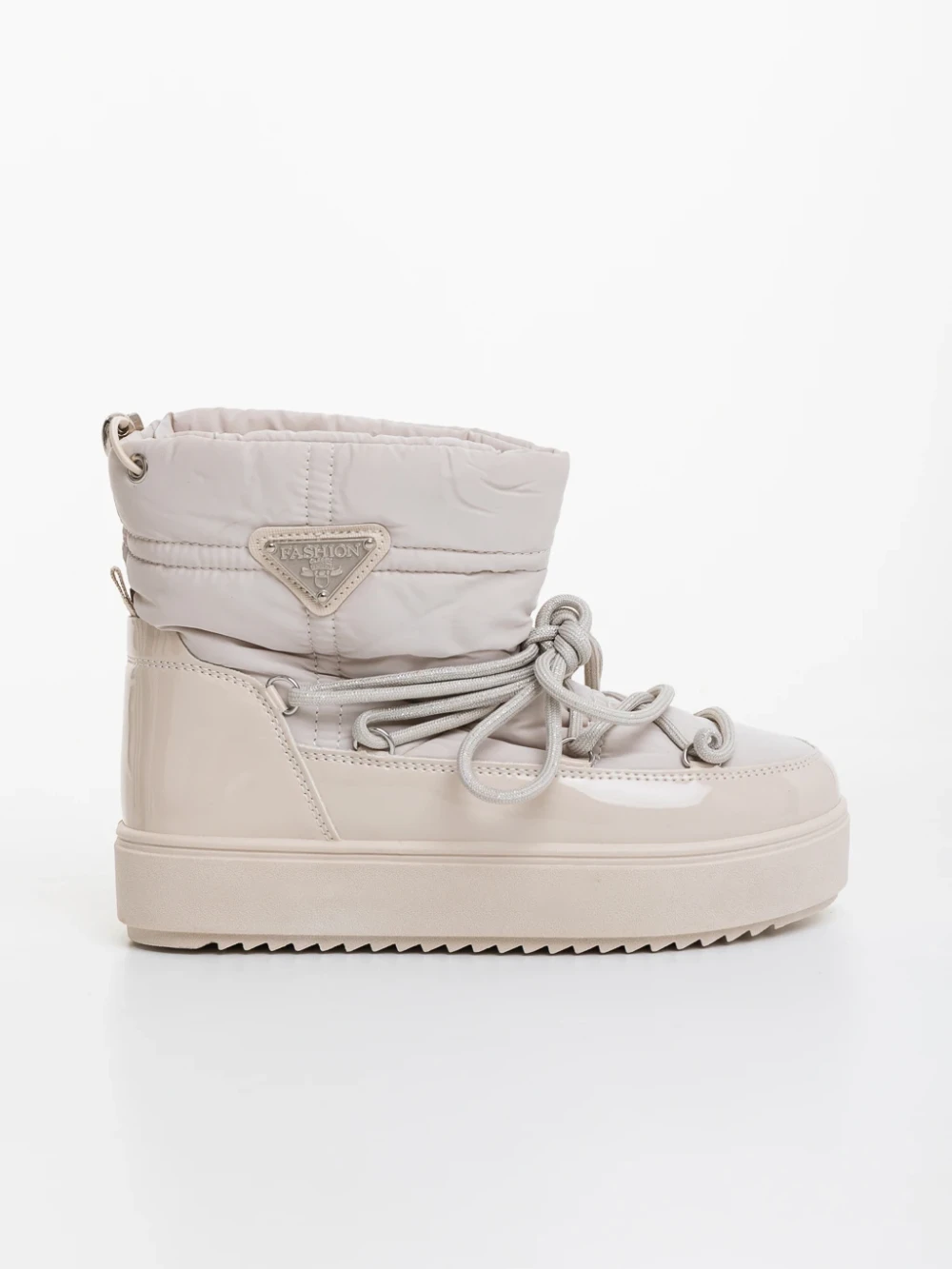 Galena bézs női csizma lakkozott ökológiai bőrből és textil anyagból Termék leírás