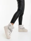 Galena bézs női csizma lakkozott ökológiai bőrből és textil anyagból