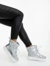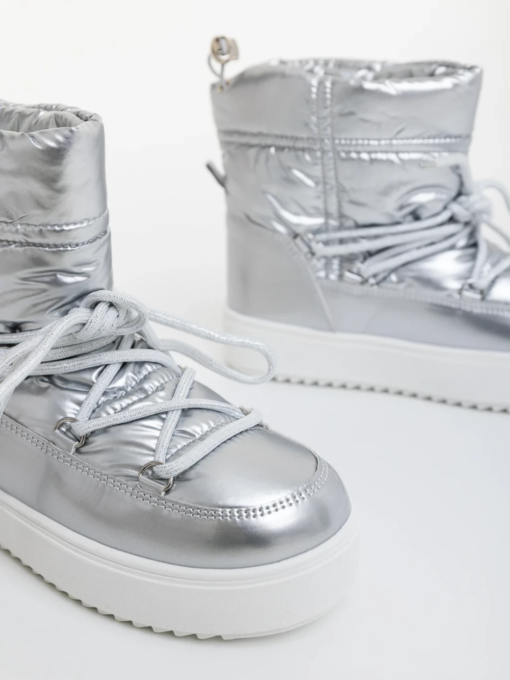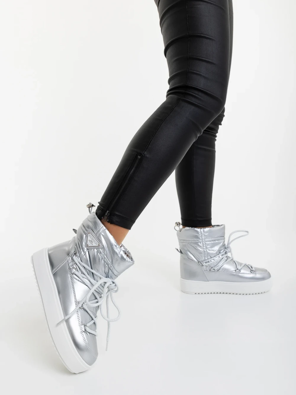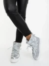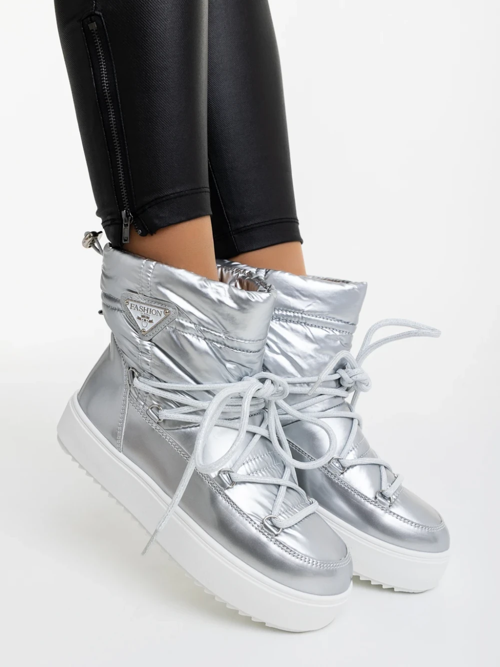 Galena ezüstszinű női csizma lakkozott ökológiai bőrből és textil anyagból