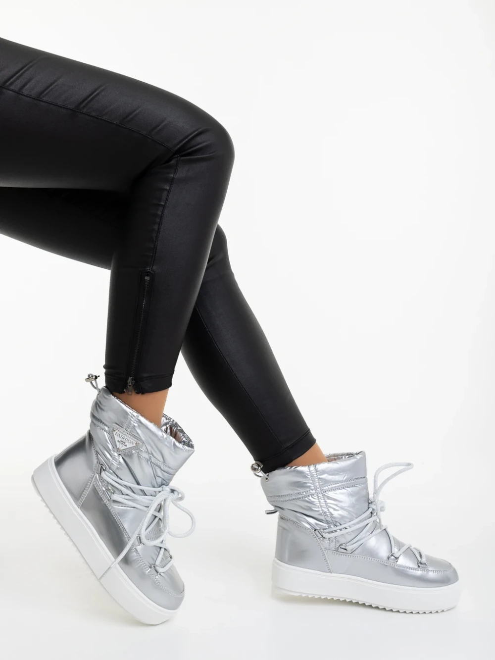 Galena ezüstszinű női csizma lakkozott ökológiai bőrből és textil anyagból Termék leírás