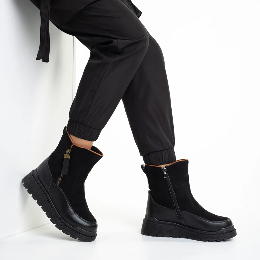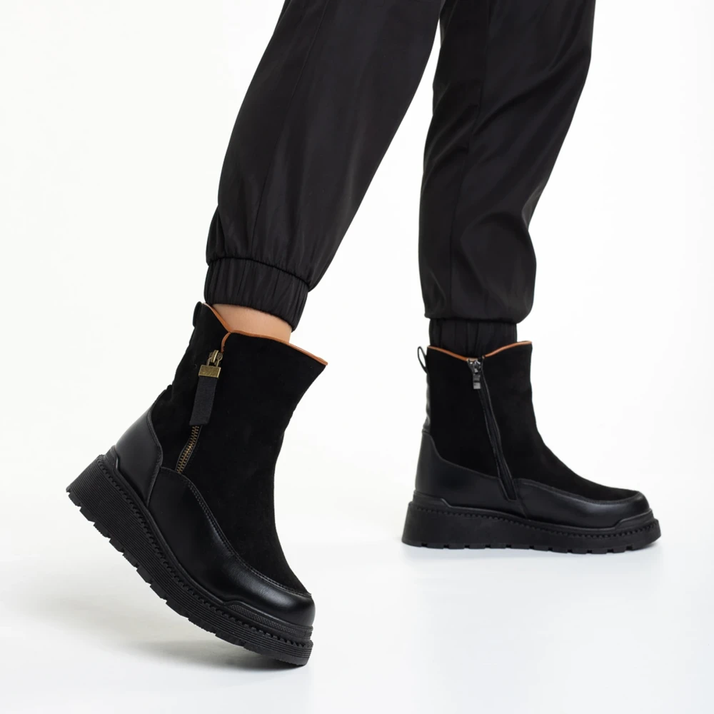 Sutton fekete női csizma, műbőrből és textil anyagból készült Termék leírás