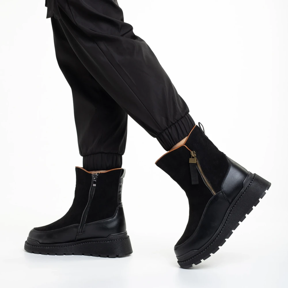 Sutton fekete női csizma, műbőrből és textil anyagból készült