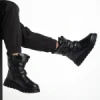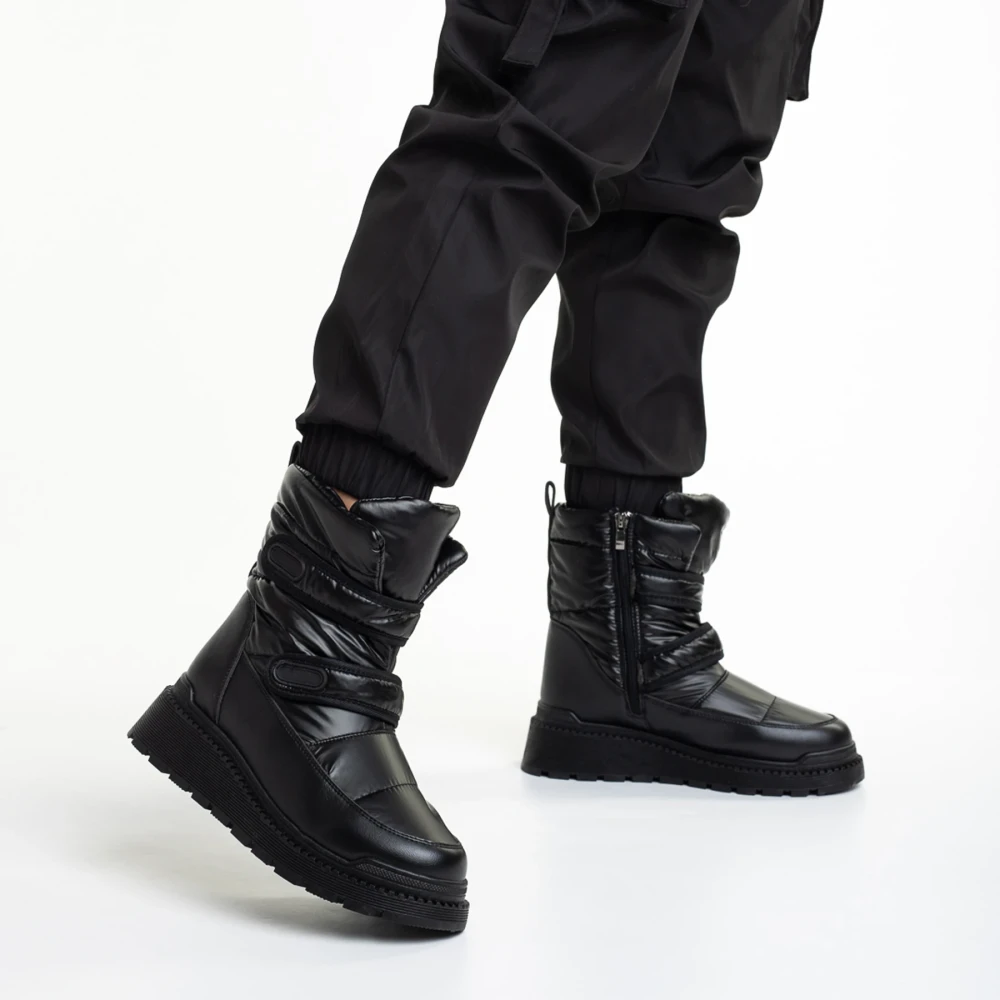 Xiomara fekete női csizma, műbőrből és textil anyagból készült