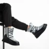 Xiomara szürke női csizma, műbőrből és textil anyagból készült