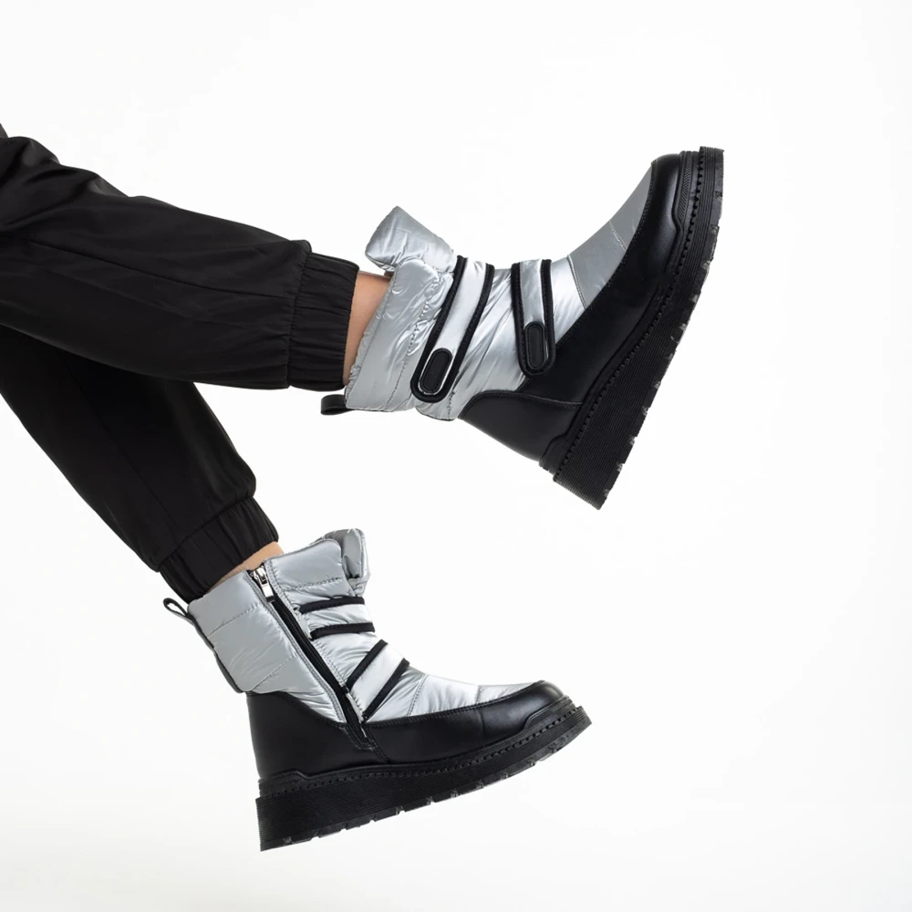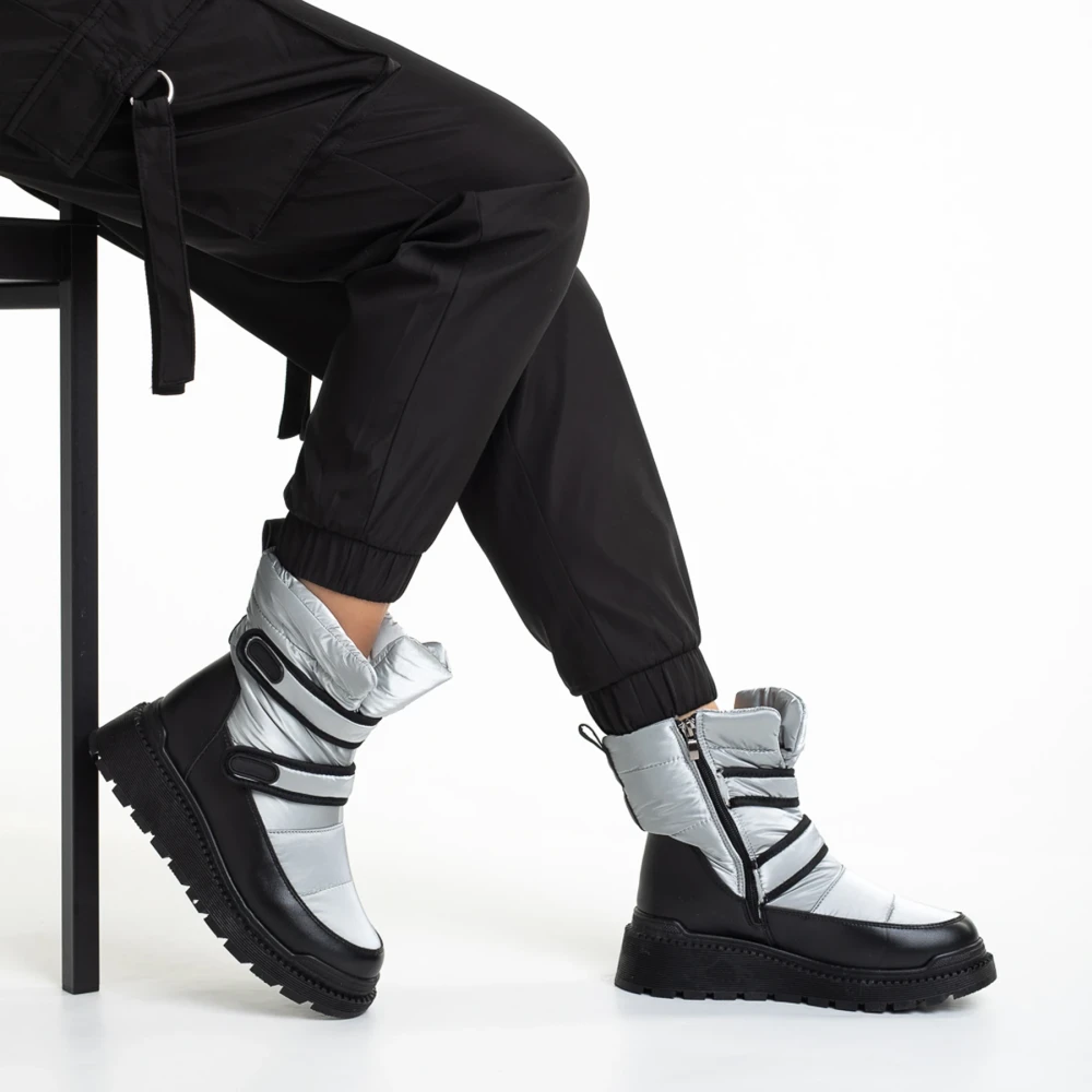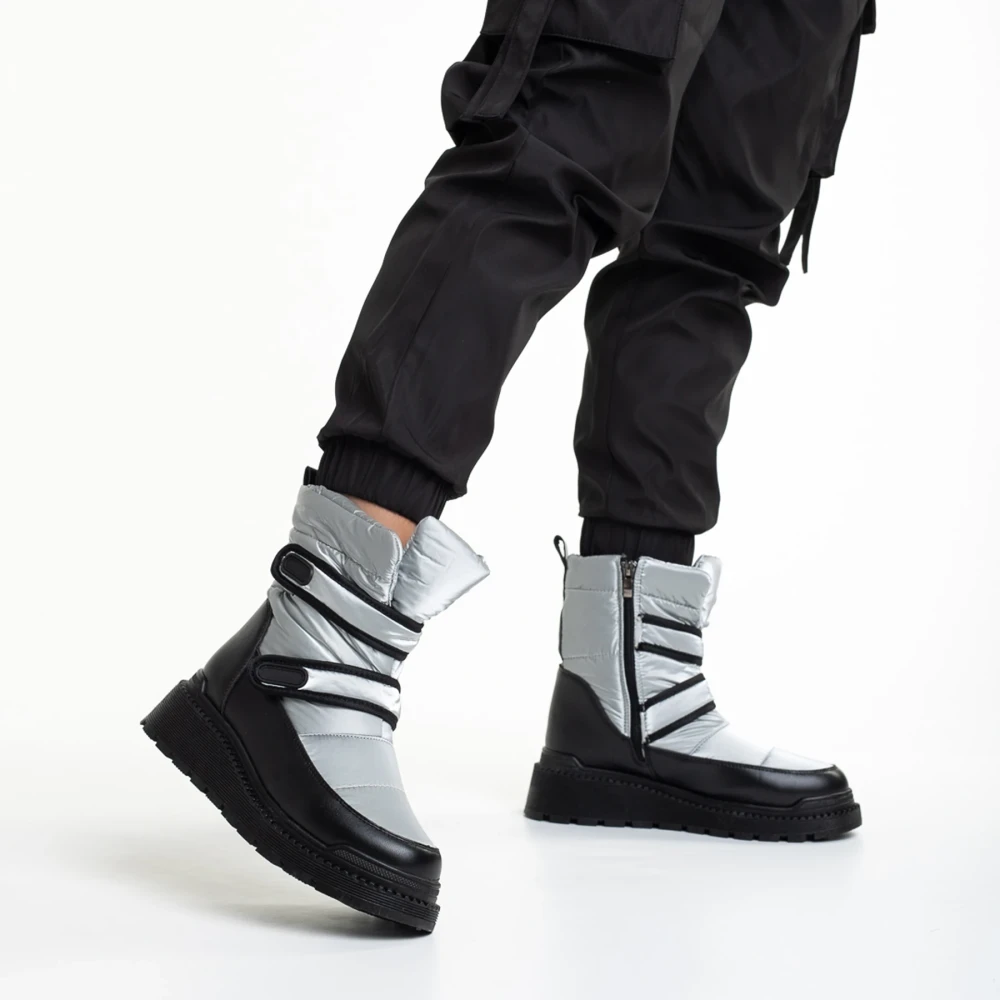 Xiomara szürke női csizma, műbőrből és textil anyagból készült Termék leírás