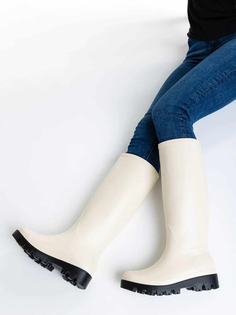 Damira bézs női csizma, gumiból készült Termék leírás