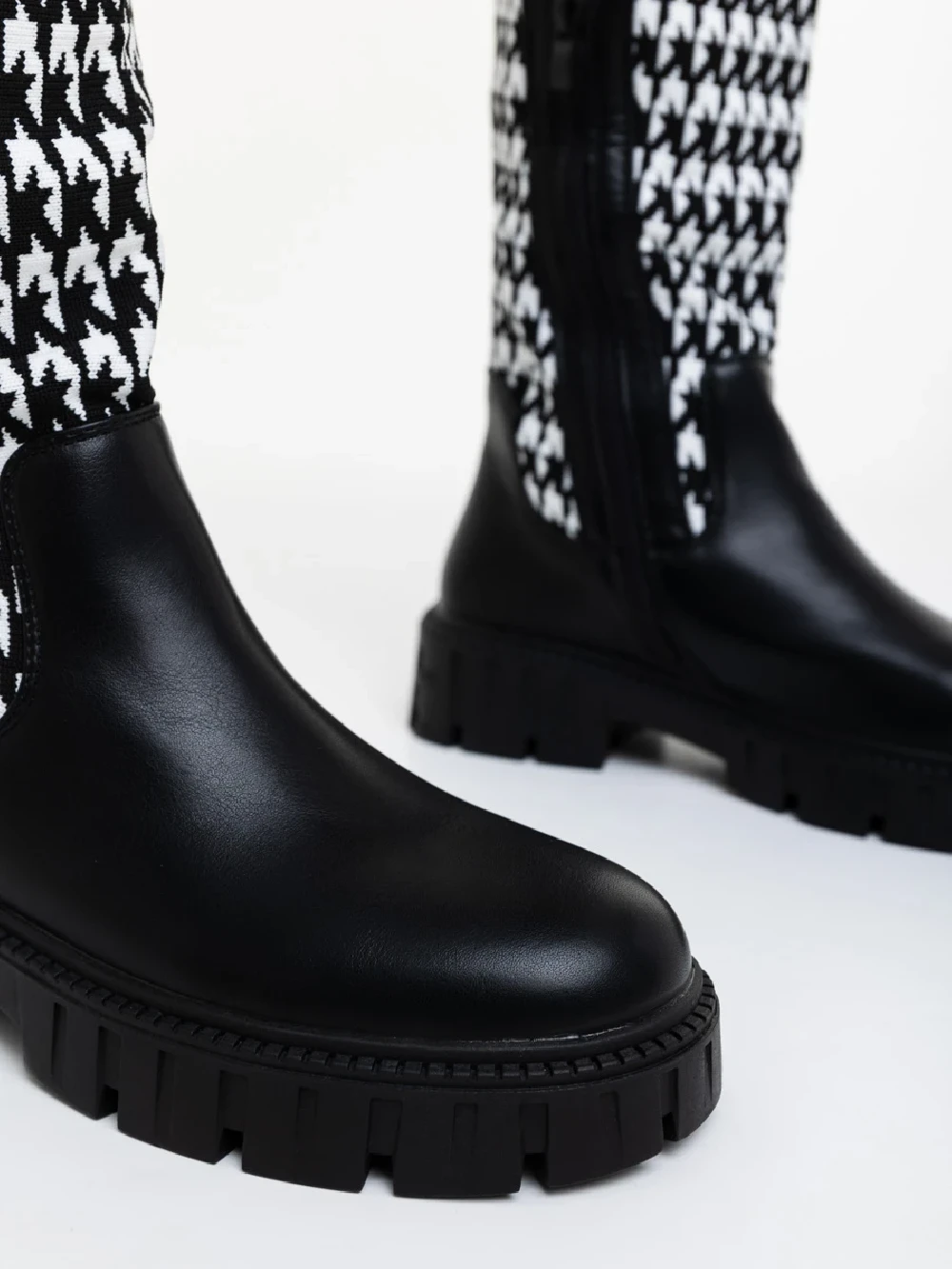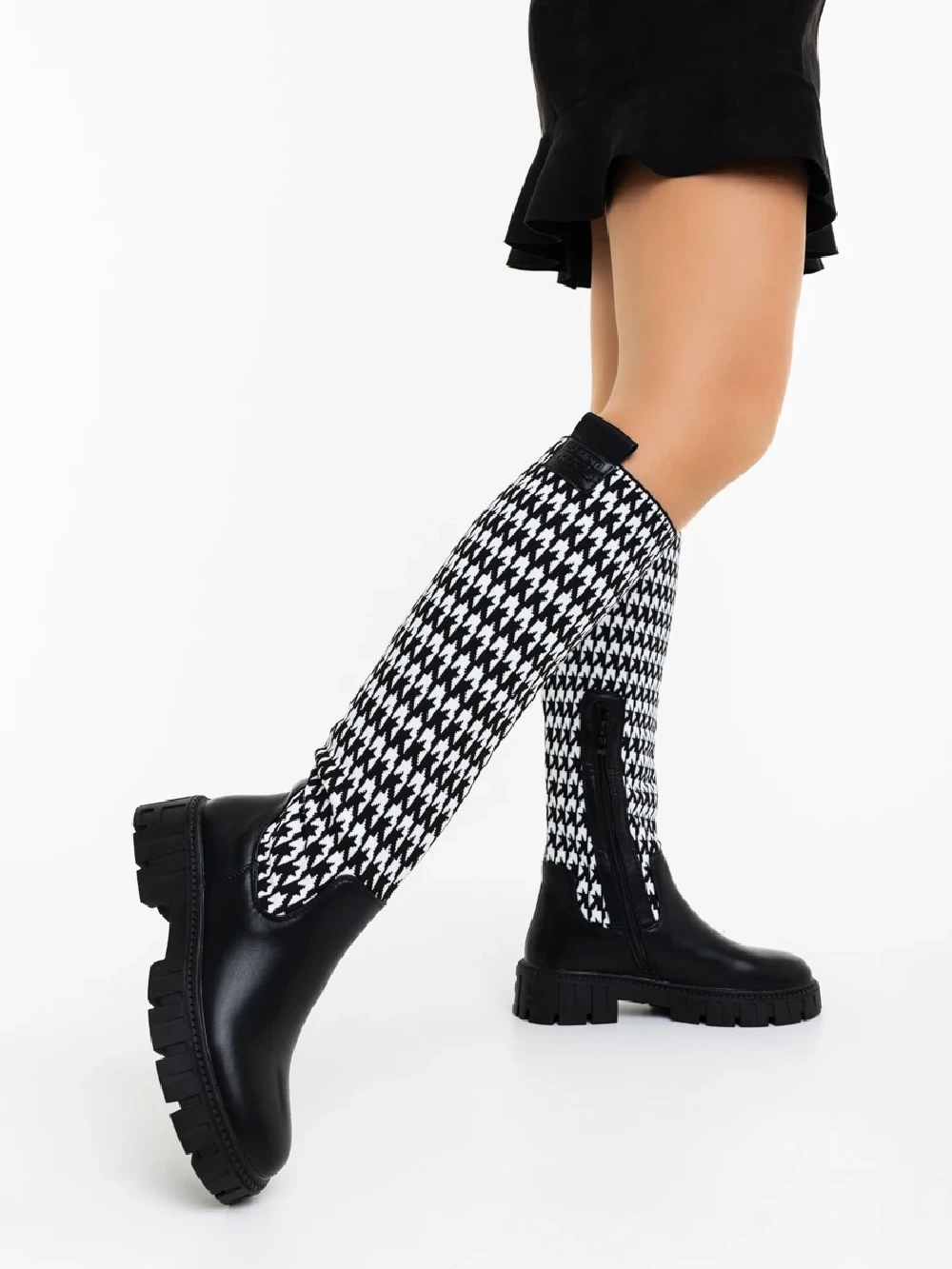 Migdalia fekete fehér női csizma ökológiai bőrből és textil anyagból