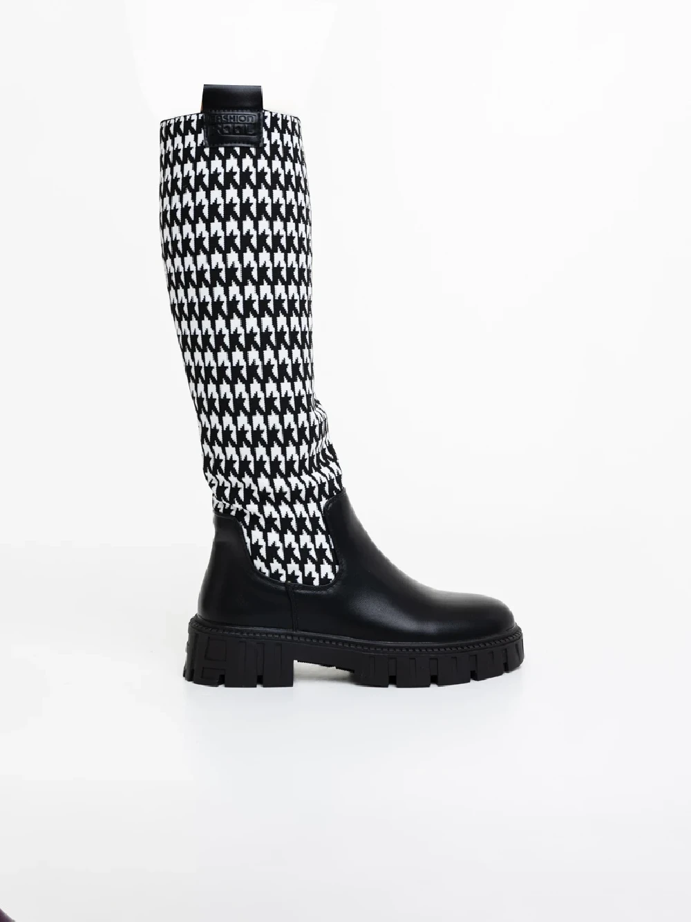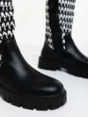 Migdalia fekete fehér női csizma ökológiai bőrből és textil anyagból Termék leírás