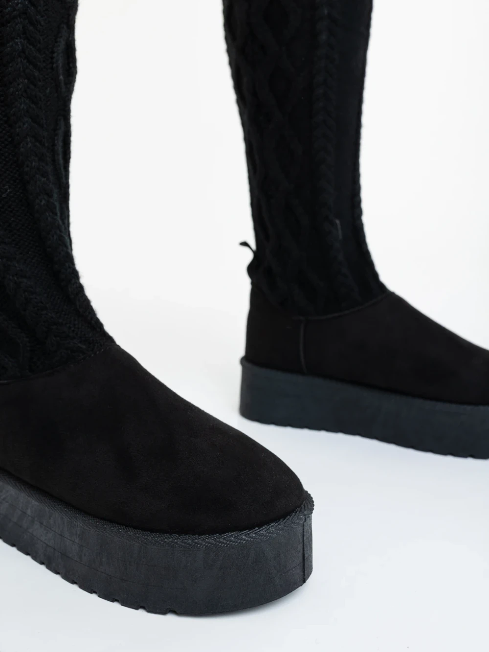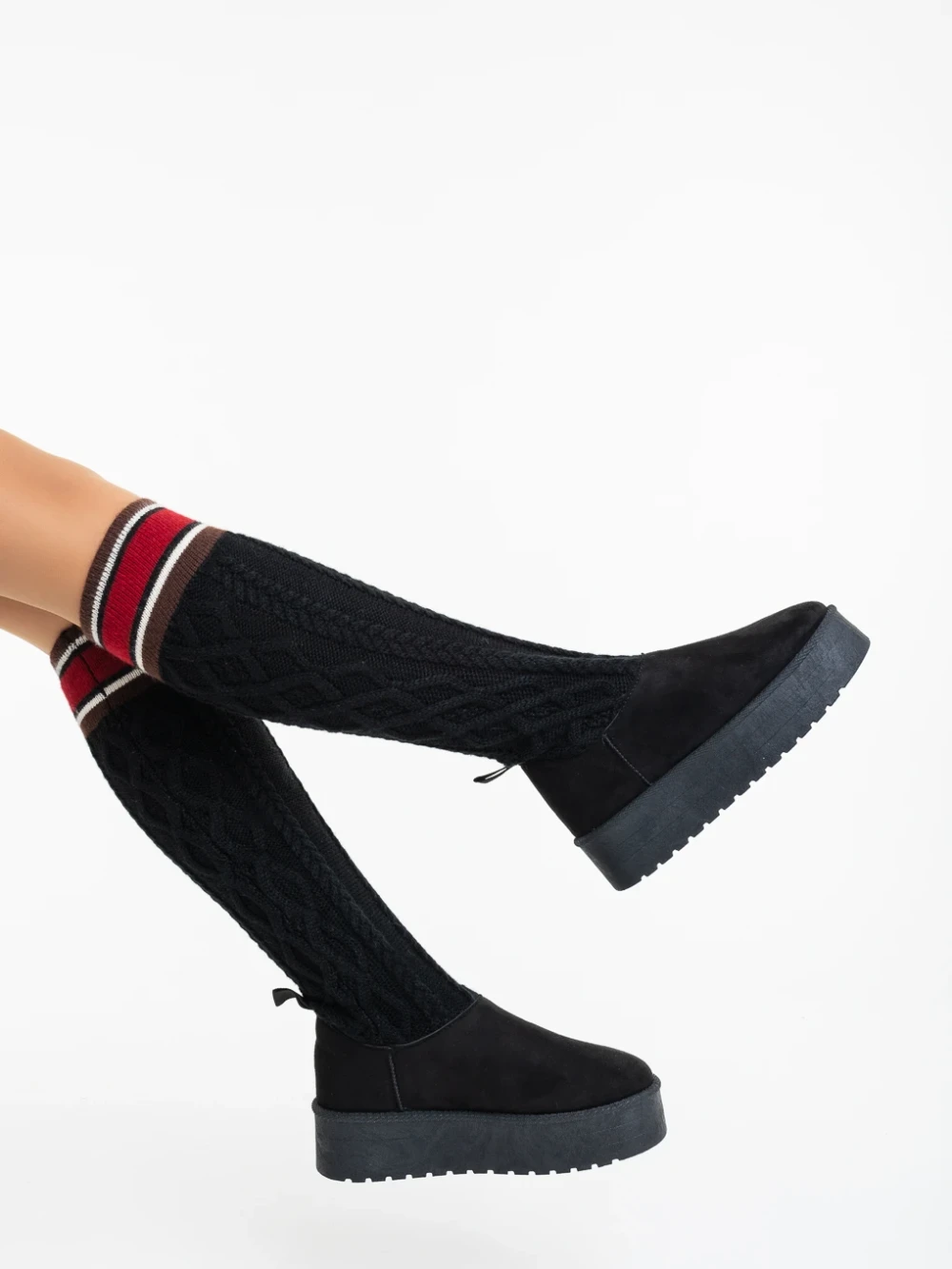Desmi fekete női csizma textil anyagból