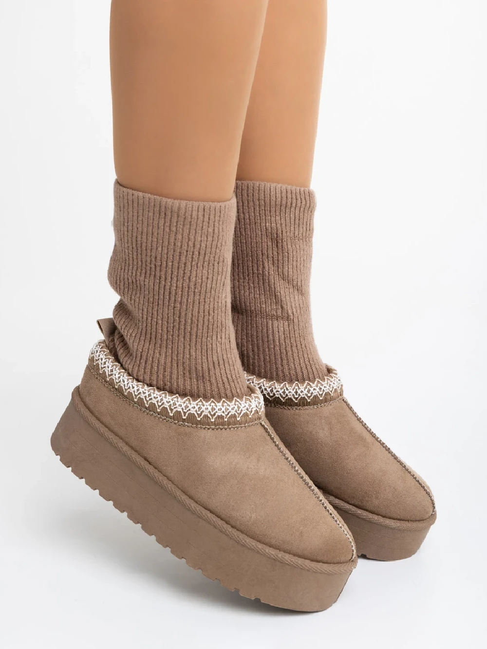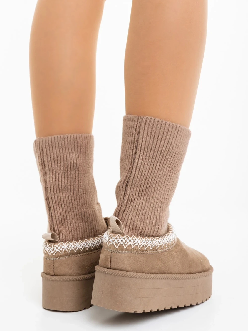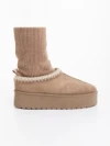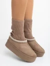 Diaza sötét bézs női csizma textil anyagból Termék leírás