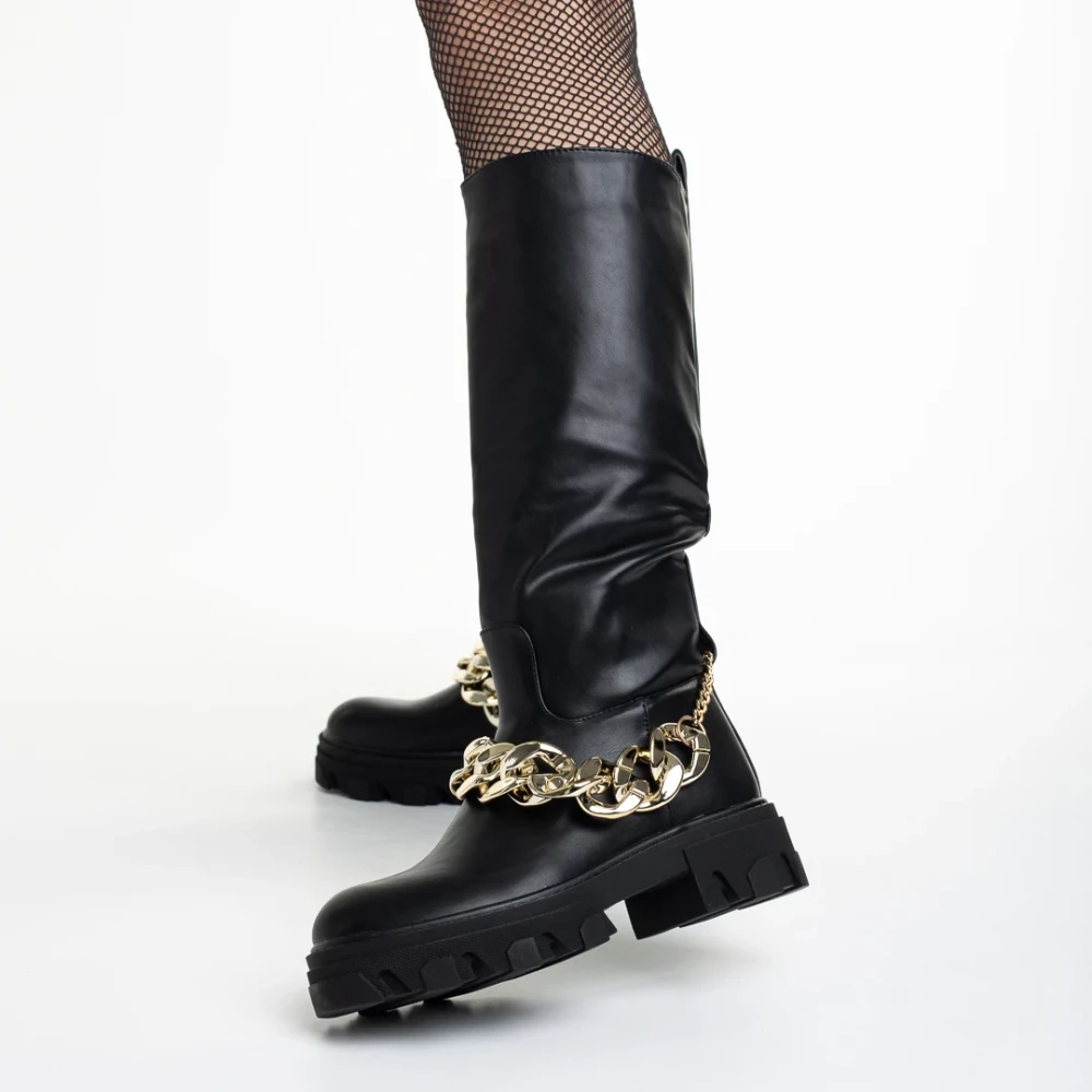 Nelma fekete női csizma, műbőrből készült Termék leírás