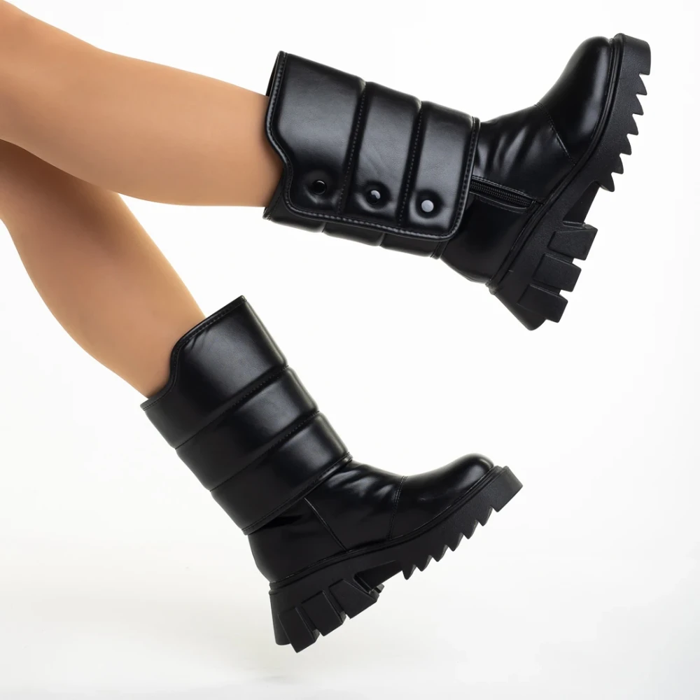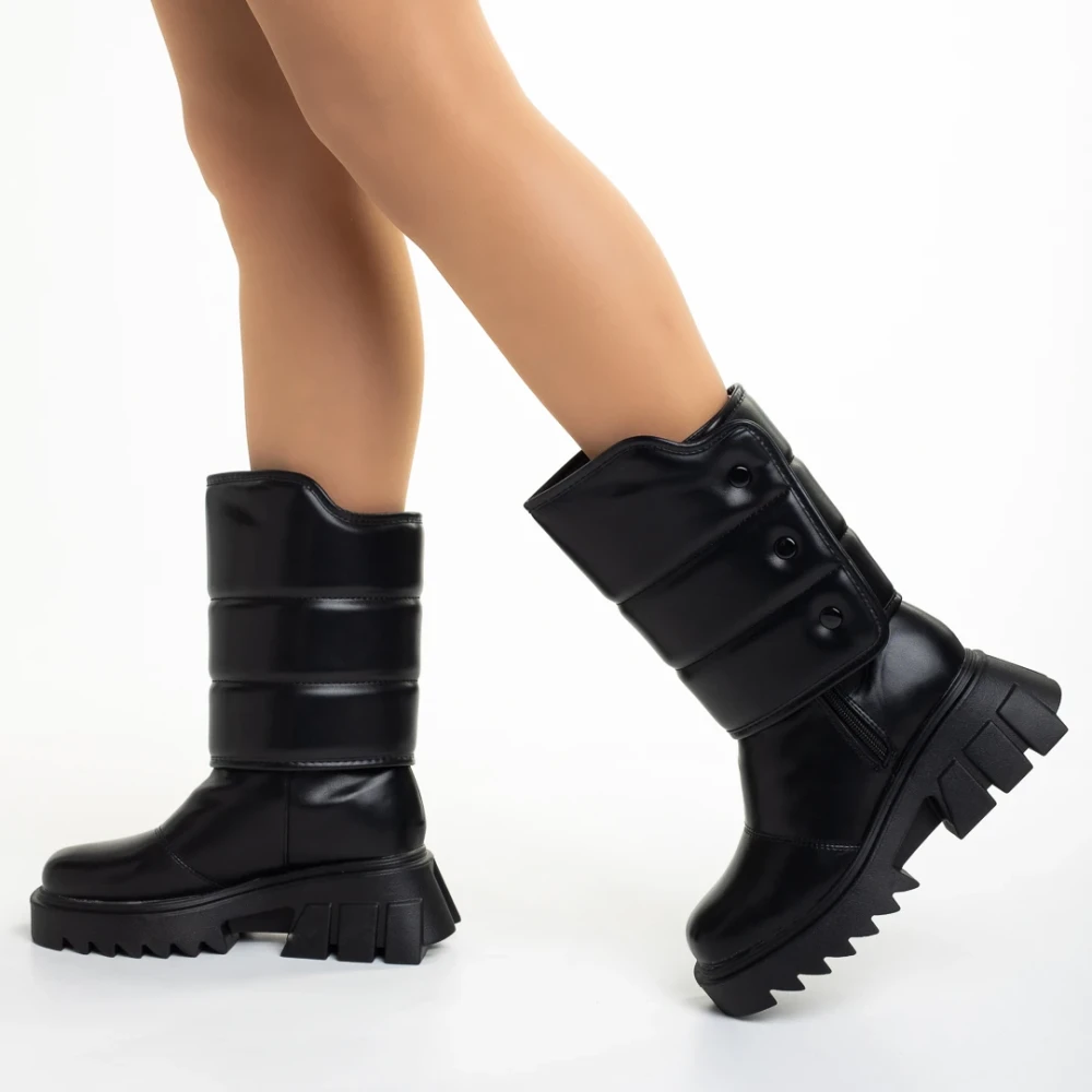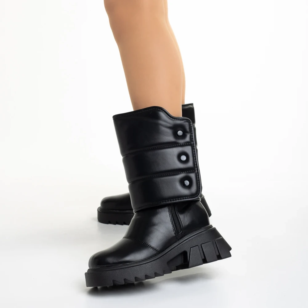 Candra fekete női csizma, műbőrből készült Termék leírás