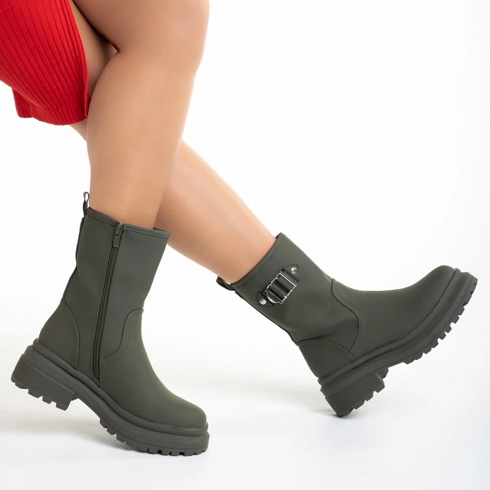 Gisselle ökológiai bőrből készült női zöld csizma Termék leírás