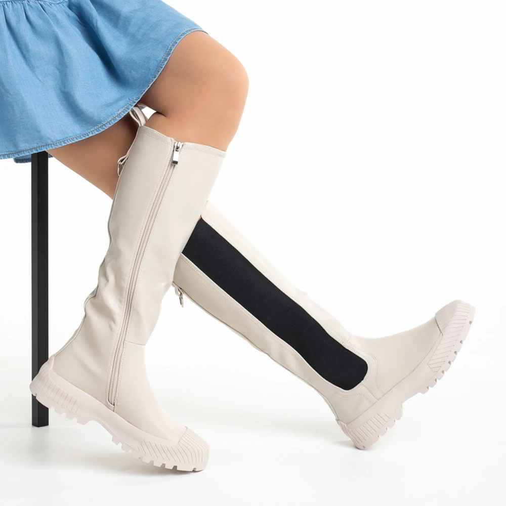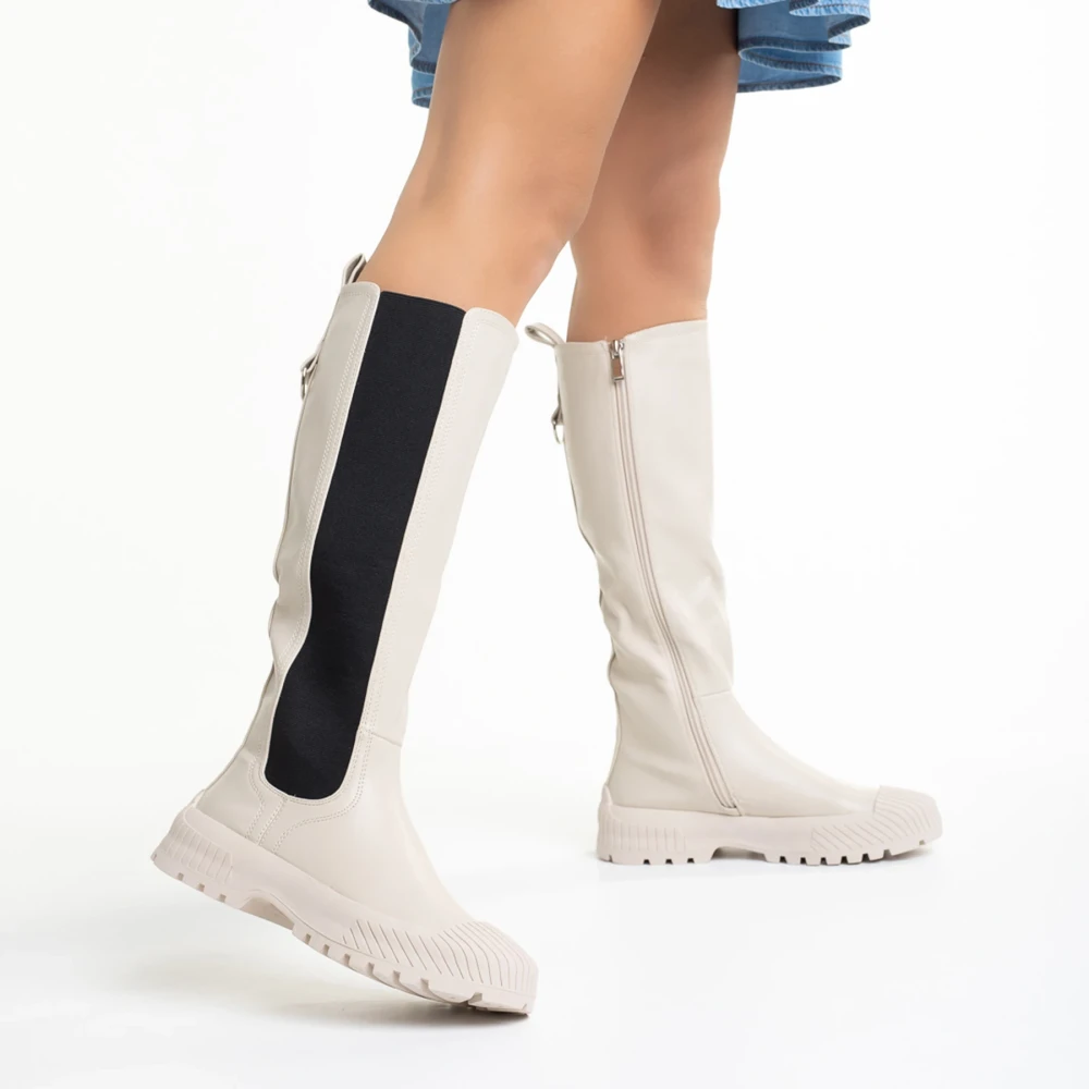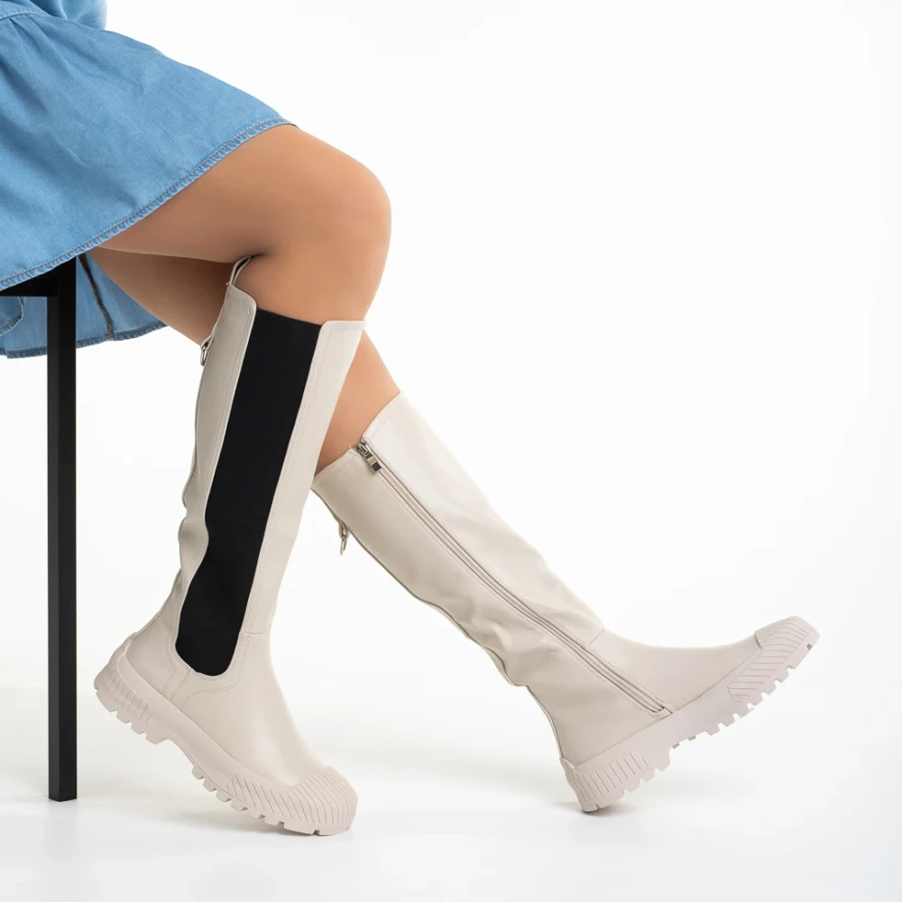 Darinda bézs színű női ökológiai bőr csizma