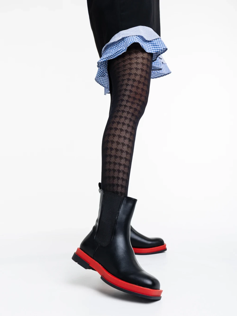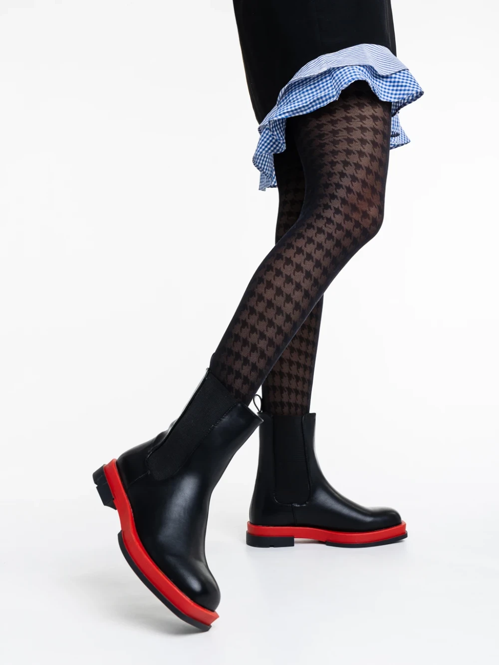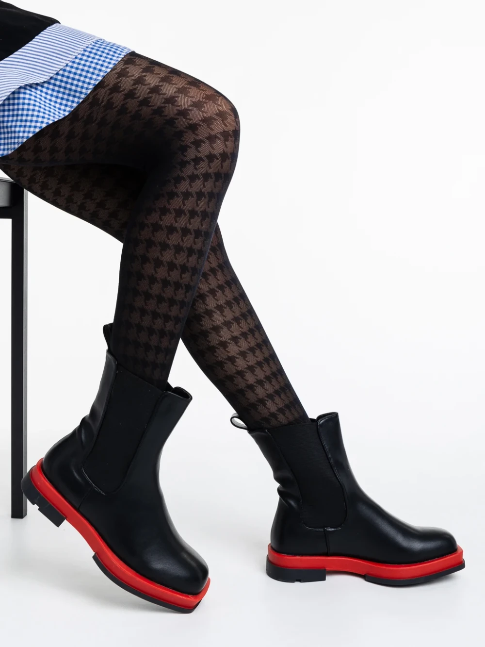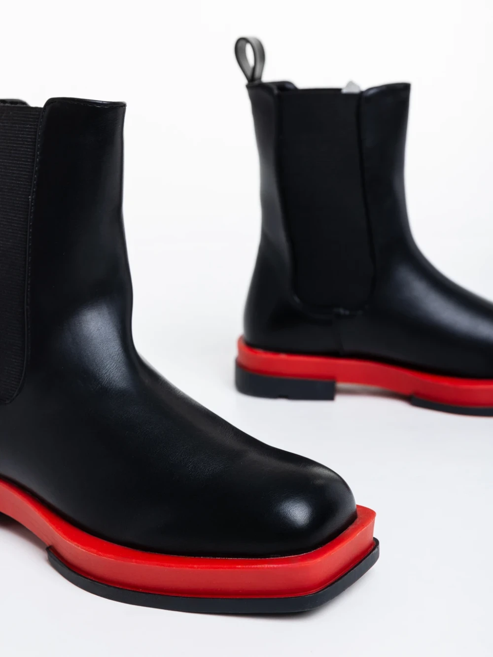 Omolara fekete és piros női csizma ökológiai bőrből