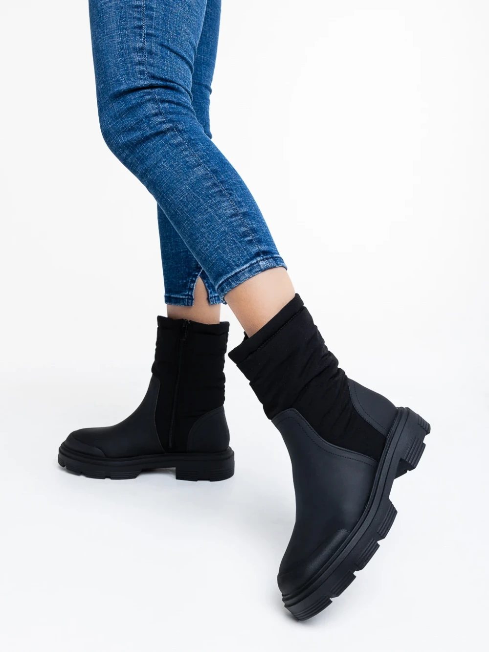 Nermina fekete női csizma ökológiai bőrből és textil anyagból