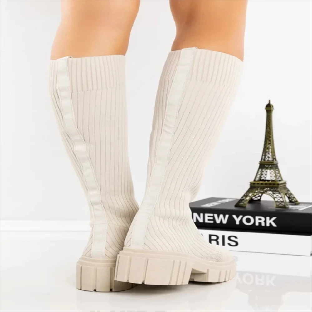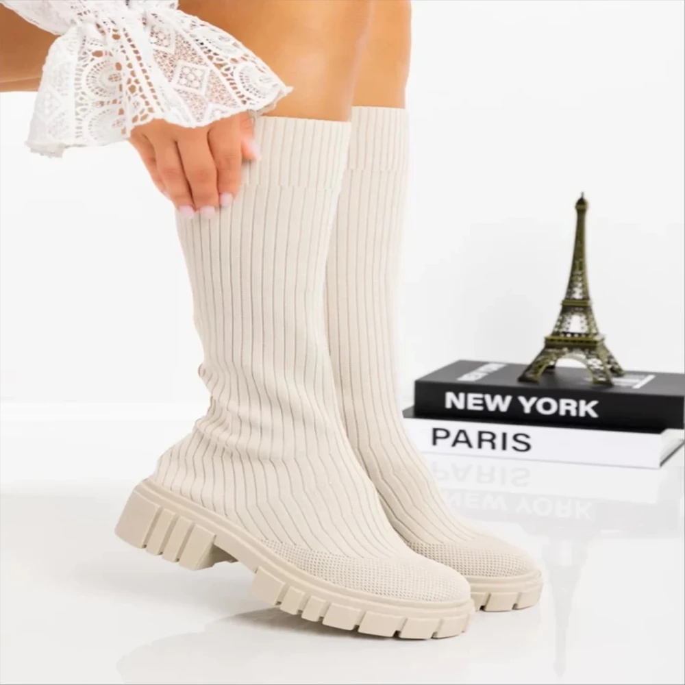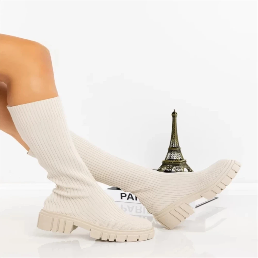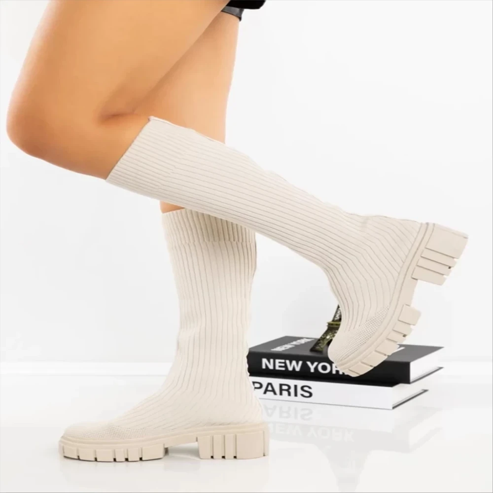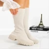 Desmi bézs női csizma textil anyagból Termék leírás